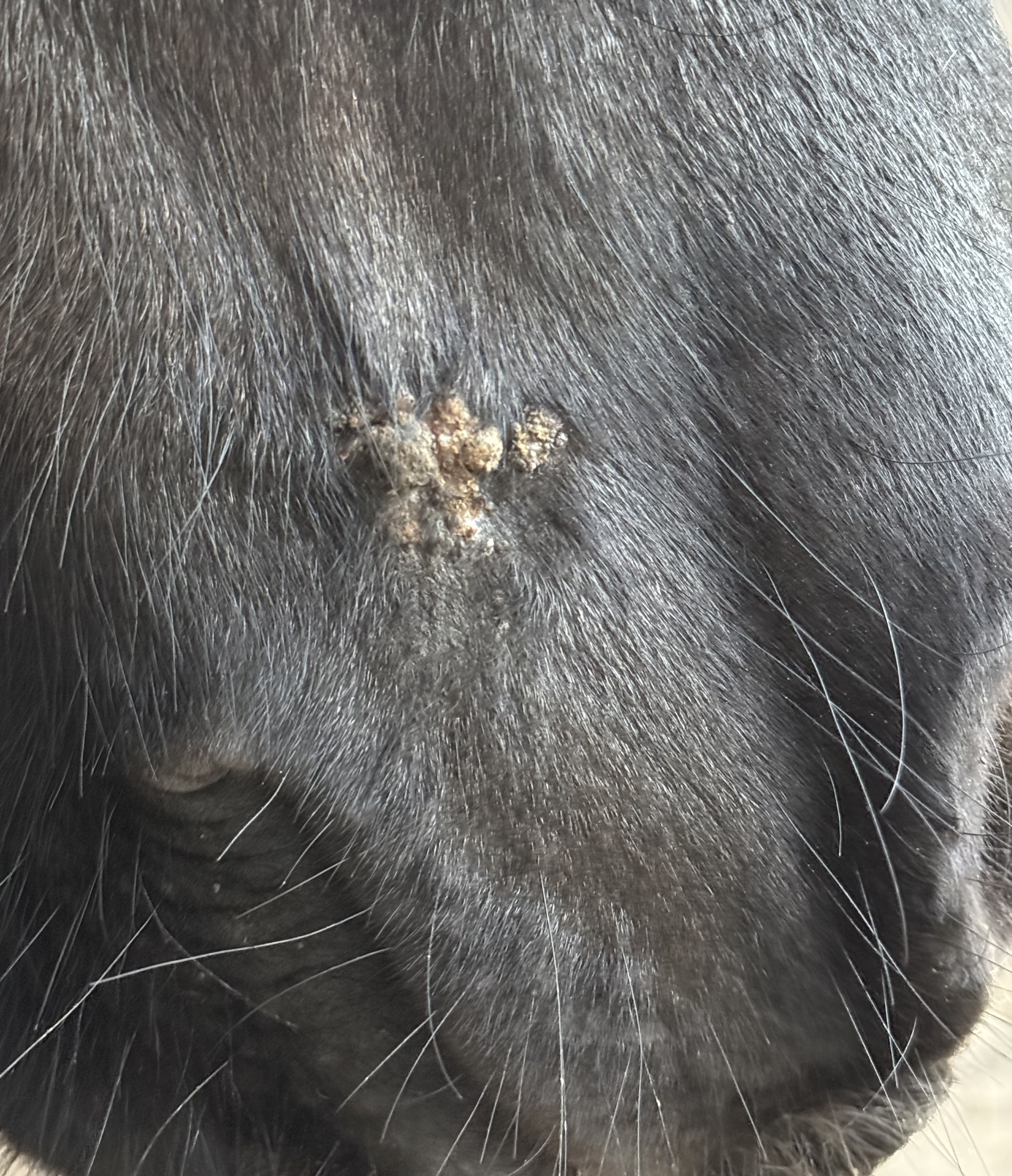 hm... schwierig... Es wächst überall so langsam vor sich hin. Ist die eine Stelle über seiner linken Nüster neu ? Oder habe ich etwas nicht mitbekommen oder verwechselt ?