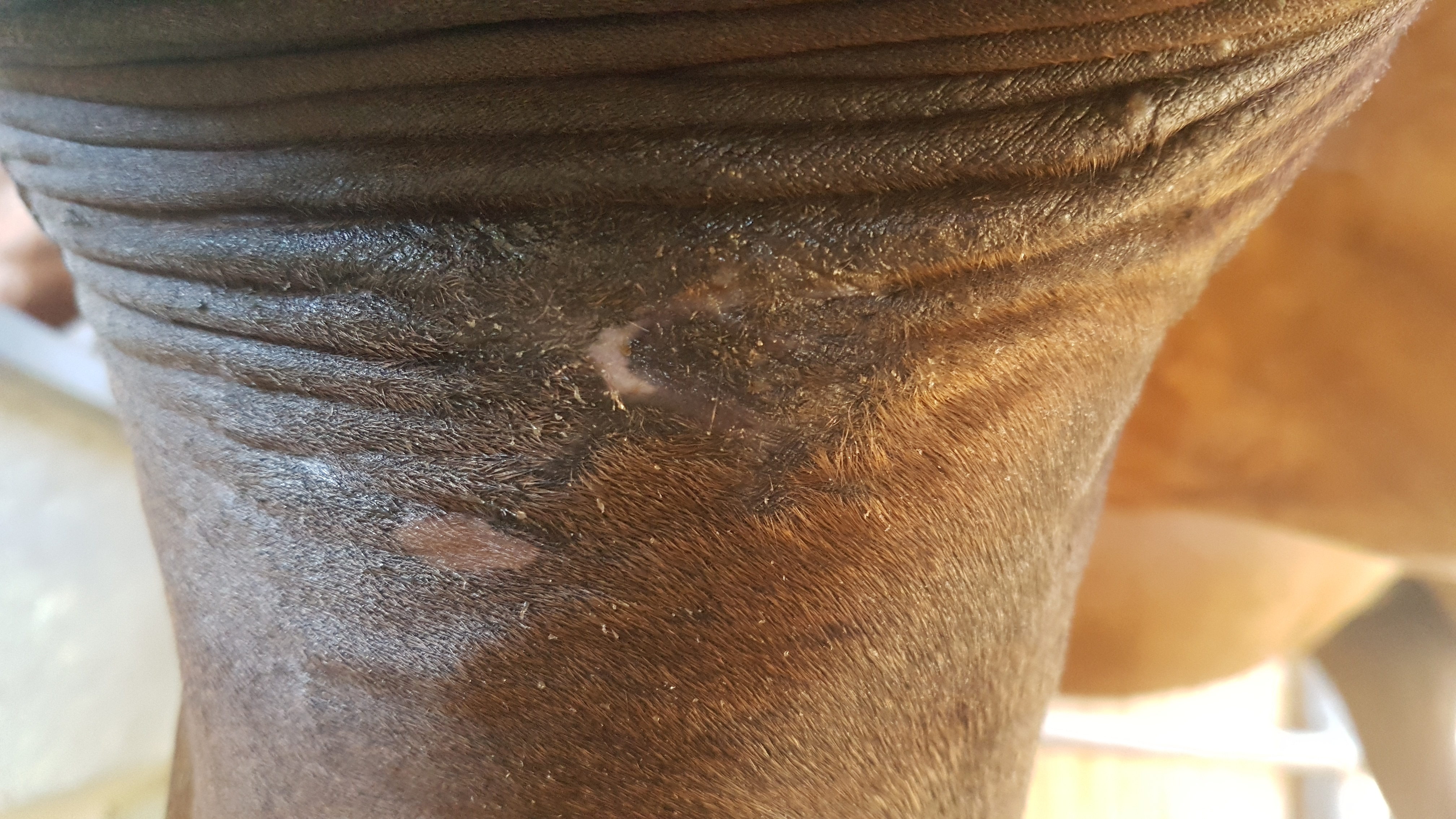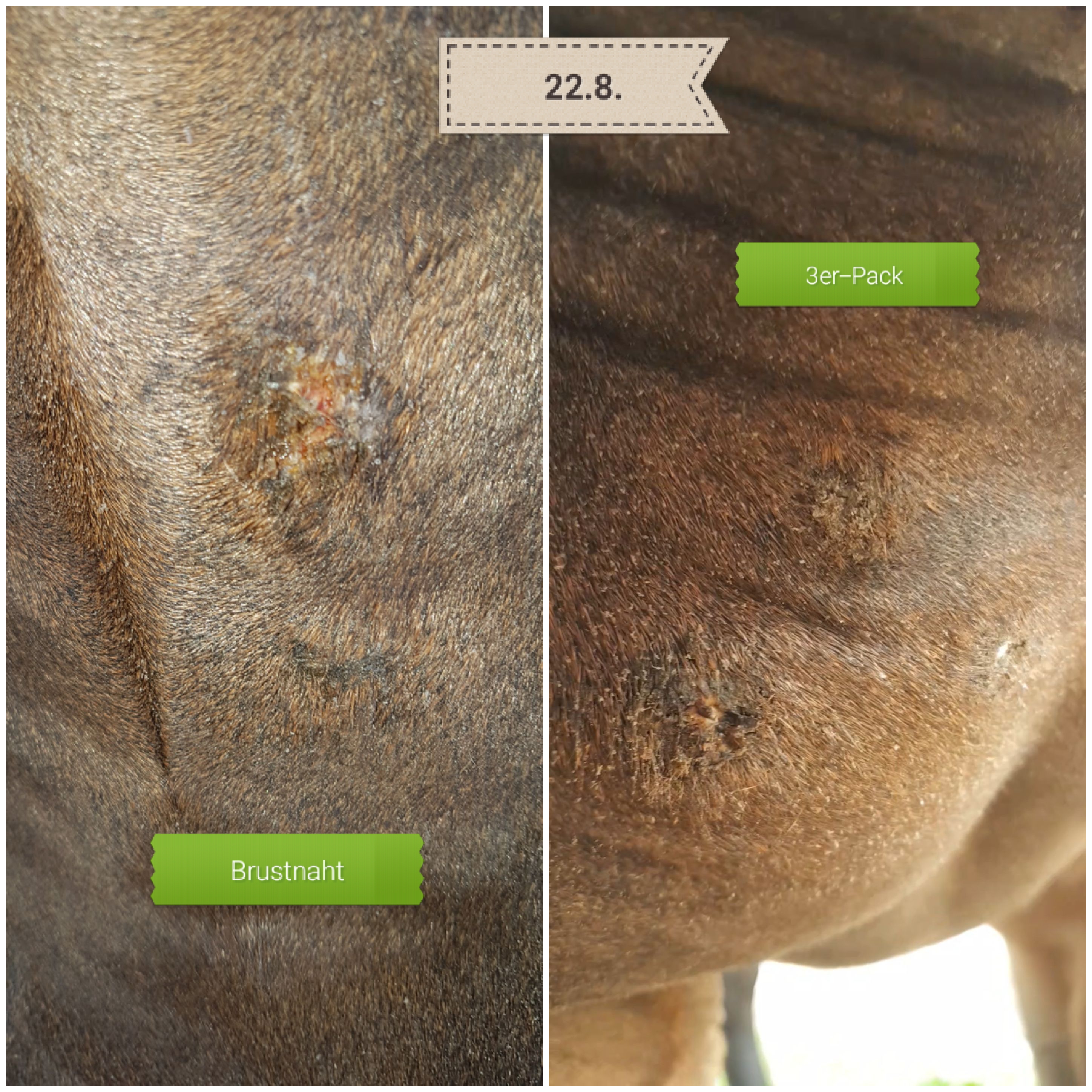 Der Rest nervt mich im Moment, überall wieder Krusten. Dabei hatte es schon so gut ausgesehen. In der Gurtlage krustet es jetzt an anderer Stelle als da, wo das ursprüngliche Sarkoid war. Ein Spaß, ich sag's Euch!