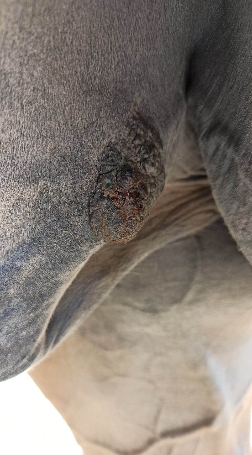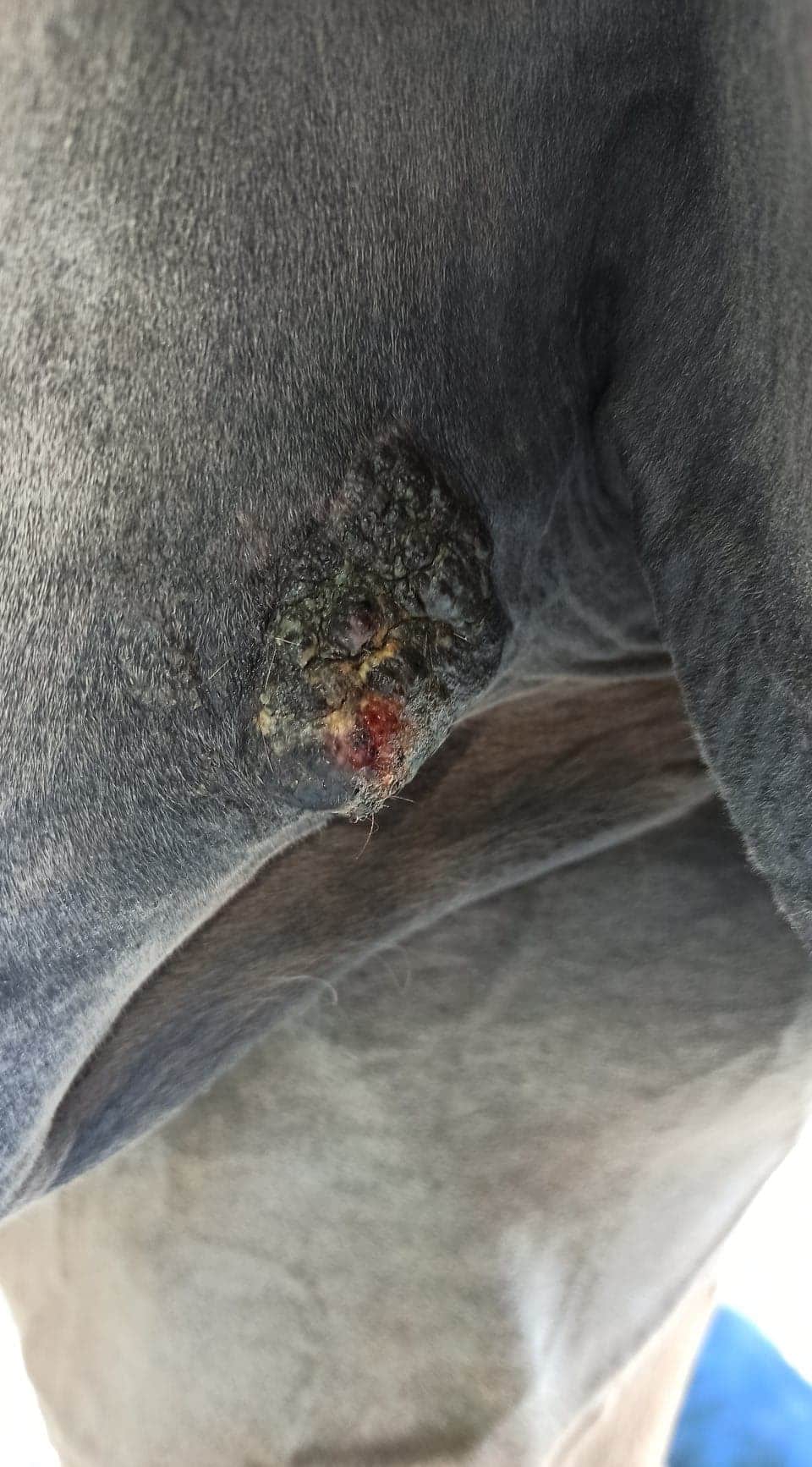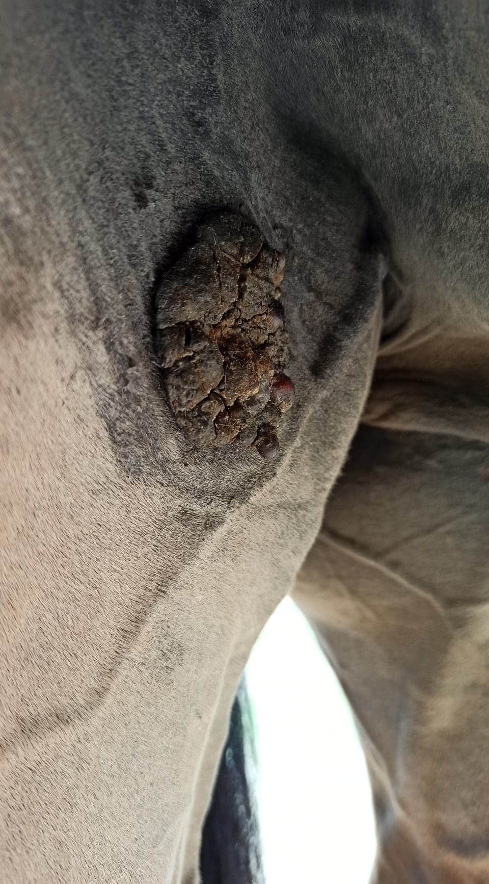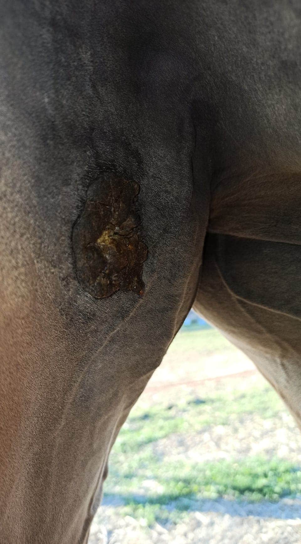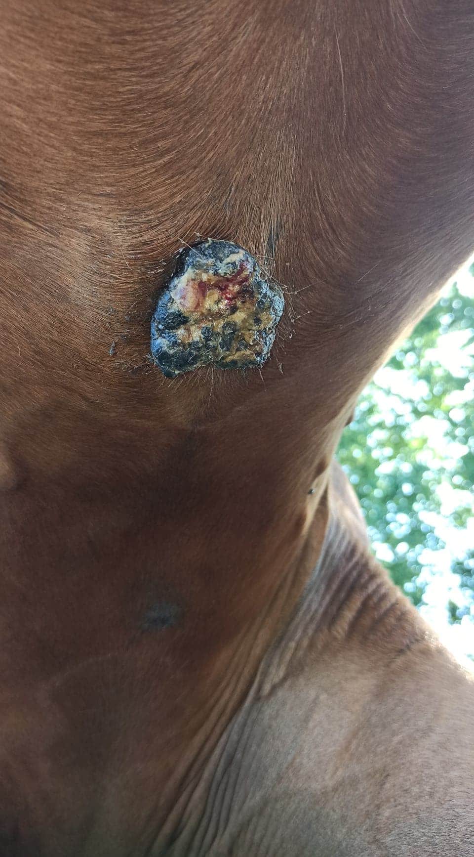 Nachdem ich die Creme ausgebreitet hatte, kratzte der Sarkoid 3 mein Pferd.