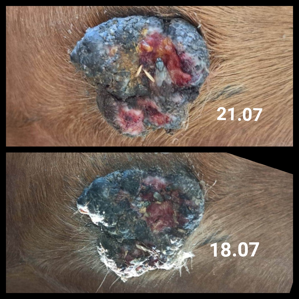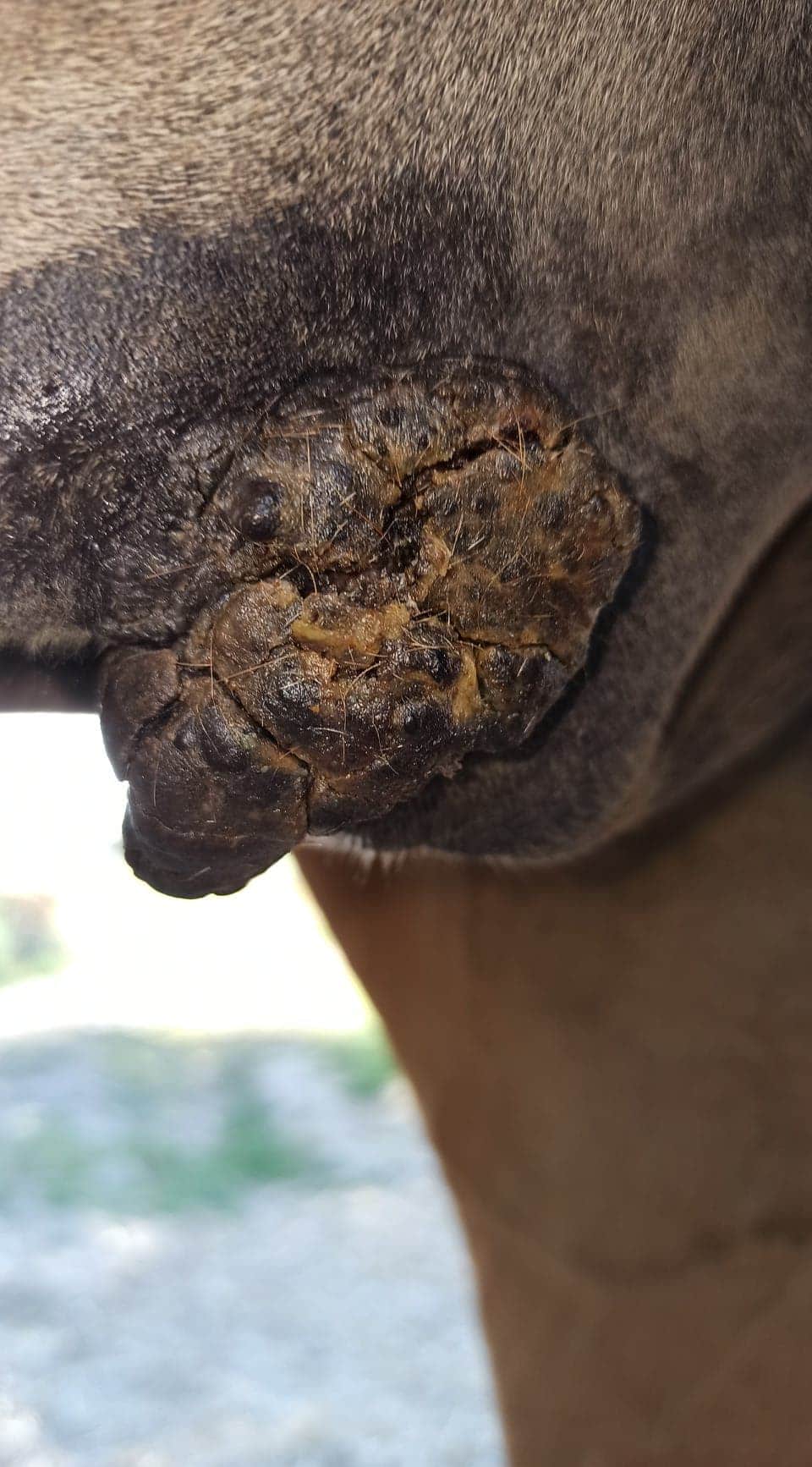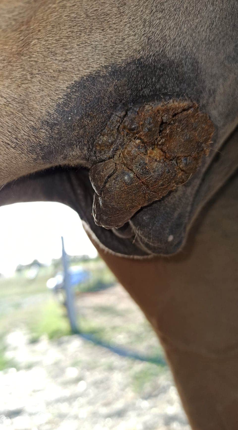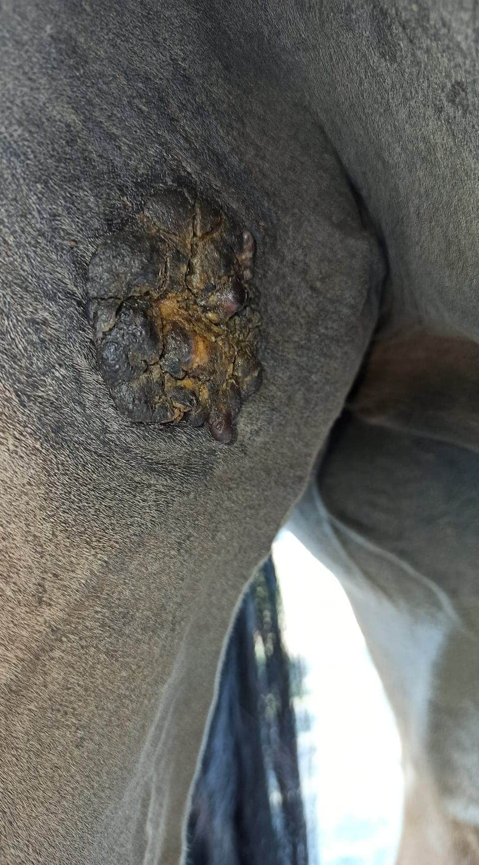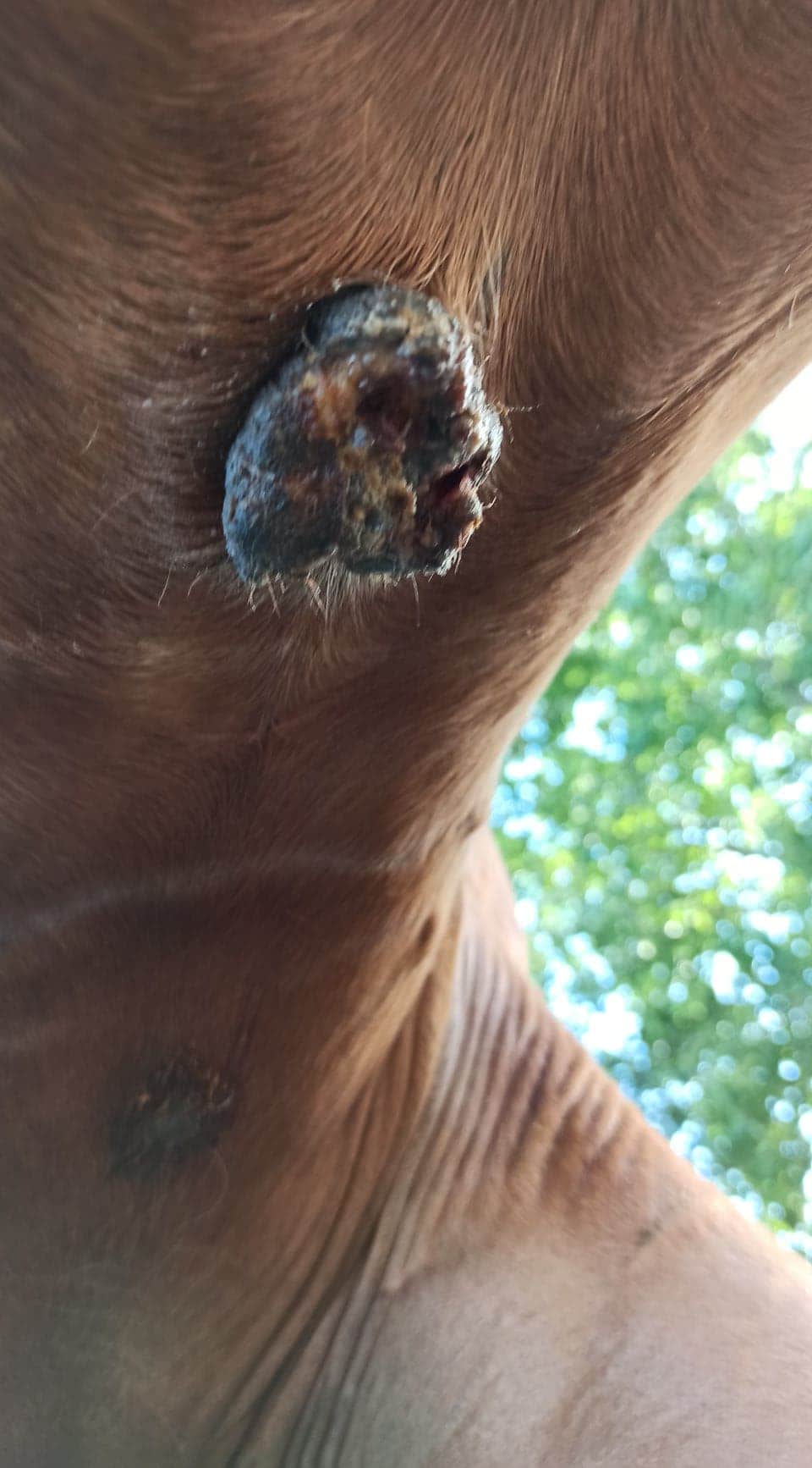 Nachdem ich die Creme ausgebreitet hatte, kratzte der Sarkoid 3 mein Pferd.