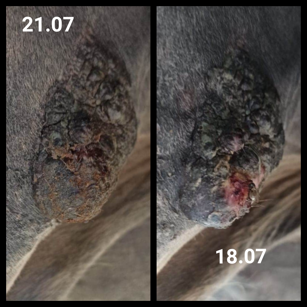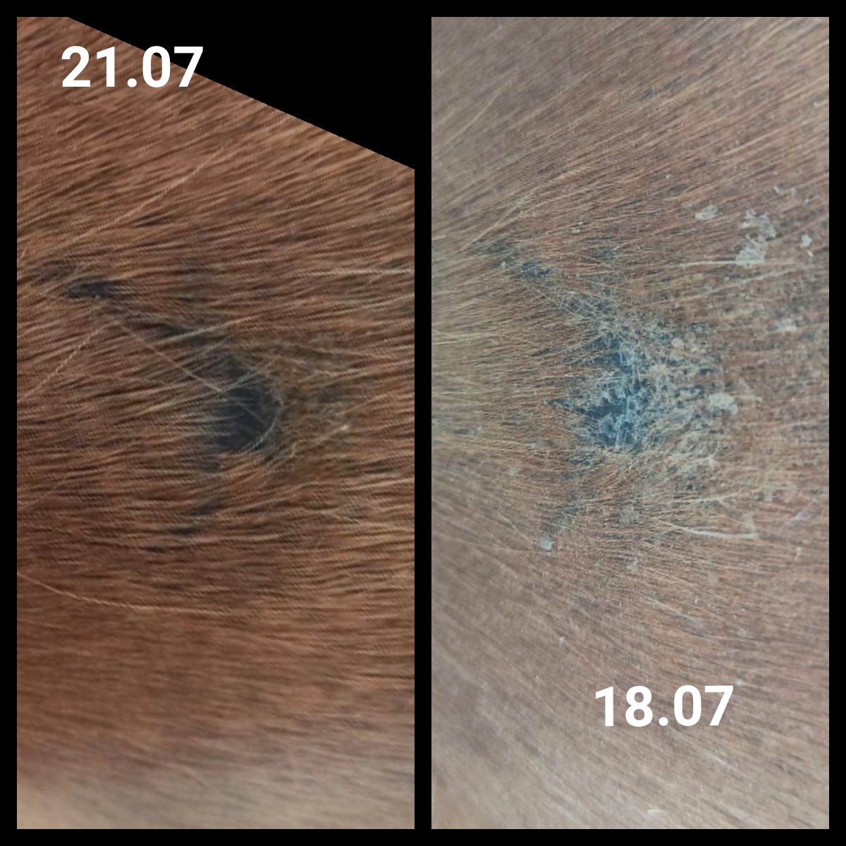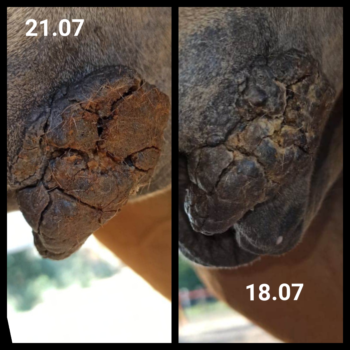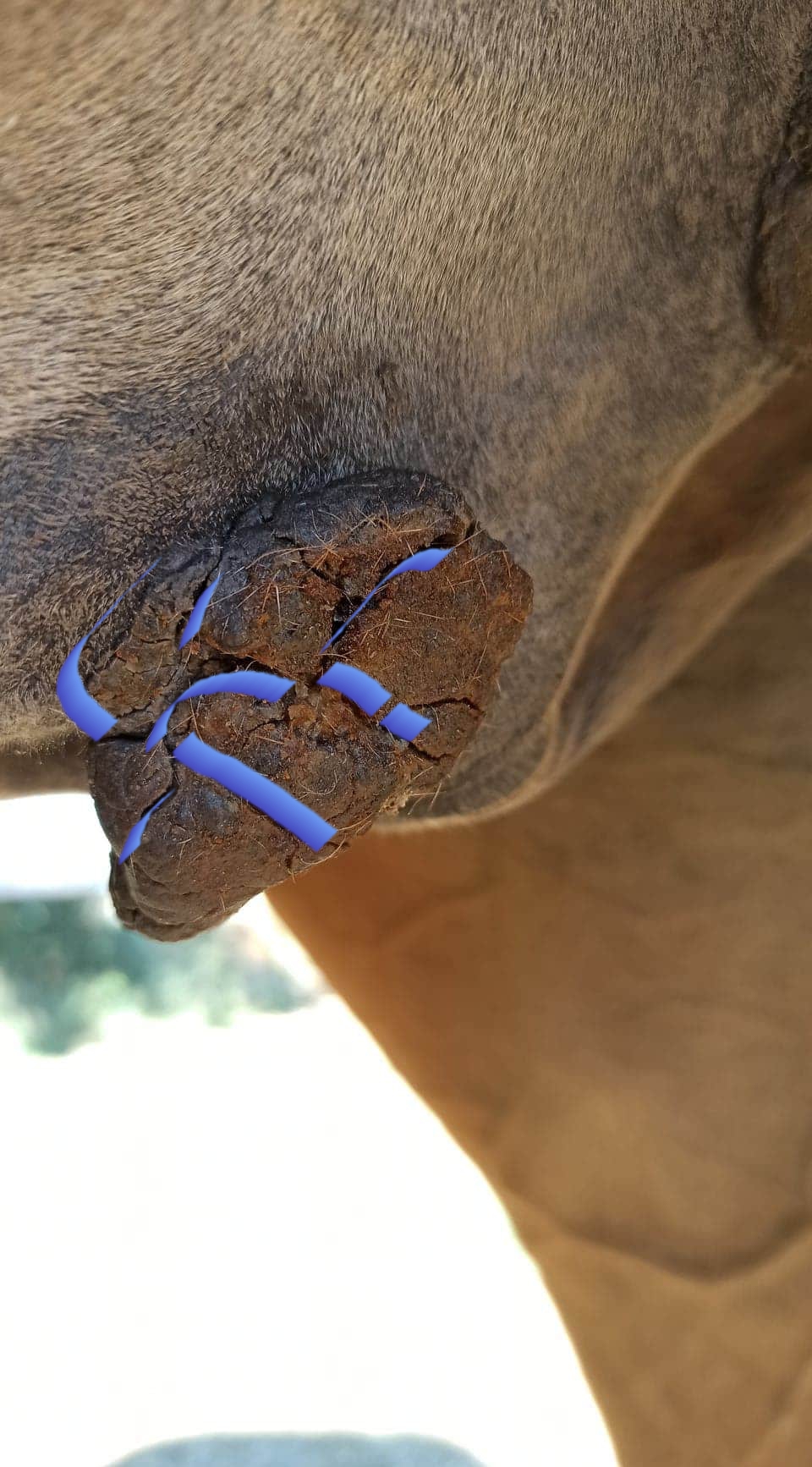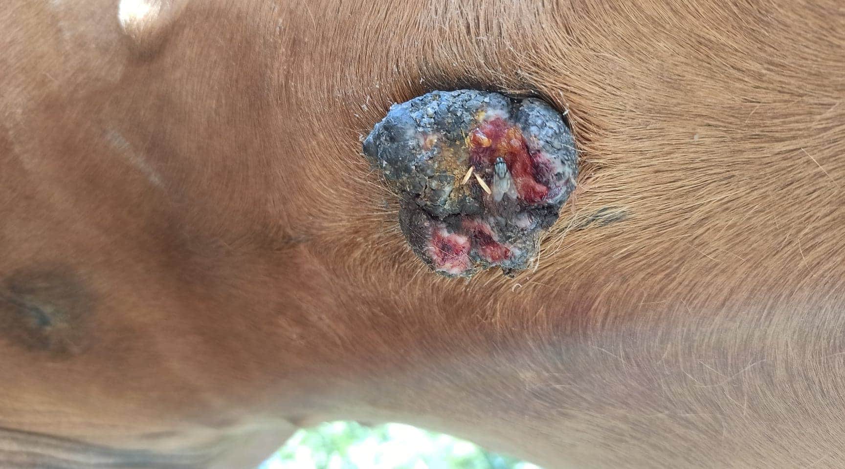 Nachdem ich die Creme ausgebreitet hatte, kratzte der Sarkoid 3 mein Pferd.