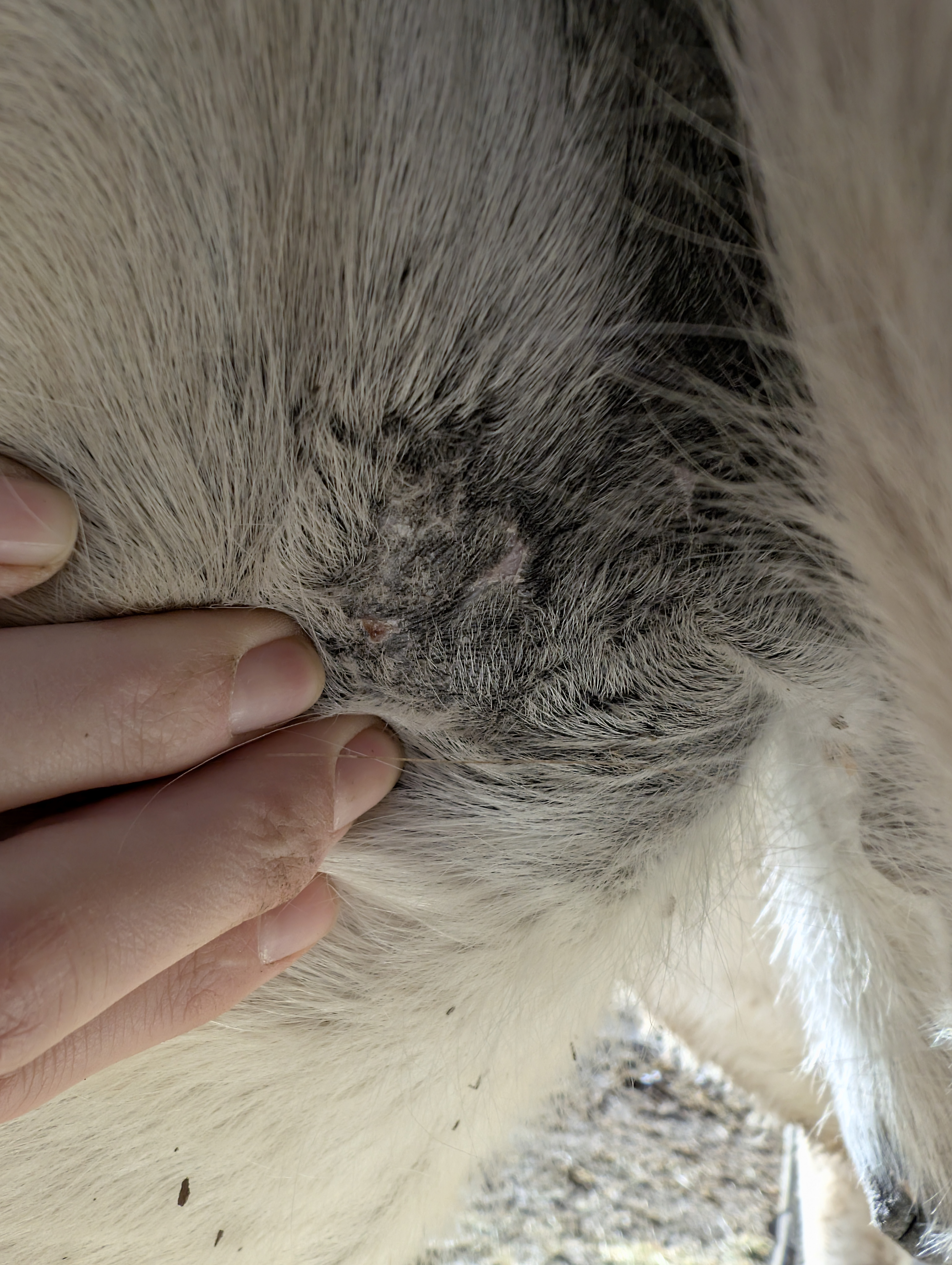 Schon länger im Auge habe ich eine neue Stelle an der Schlauchtasche. Sie ist tatsächlich etwas größer geworden. Also schmiere ich auch hier jetzt nahezu täglich, bisher keine Reaktion. Was meint ihr Sarkoid? Oder doch etwas anderes?