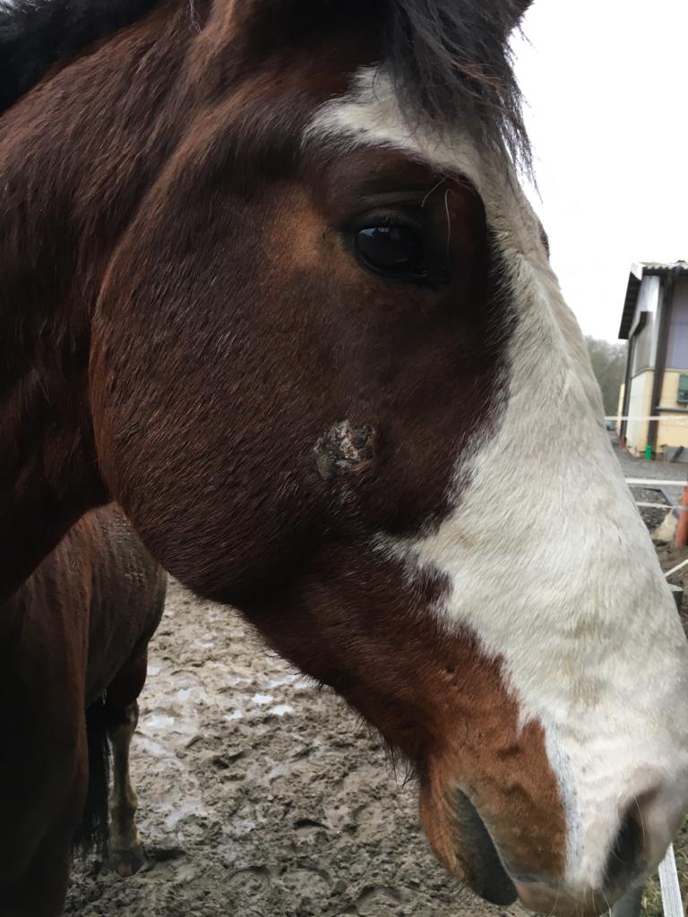 Mein 4-jähriger Wallach, den ich zur Verfügung habe, hat seit etwa Mitte des Jahres ein Sarkoid am Kopf. Zunächst war es nur eine geschlossene Warze, dann fing es an immer öfter aufzublühen und auch größer zu werden. Es wurde zunächst wenn es offen war mit Socatyl behandelt, was die Wunde auch immer ganz gut innerhalb von 1-2 Tagen verschlossen hat. Dann wurde vom TA eine Pilzimpfung empfohlen, die brachte aber auch keine Besserung des Sarkoids. Jetzt nutzen wir seit ein paar Tagen xxterra (dermequin), was meine TA mir besorgt hat. Ich freue mich über eure Tipps!