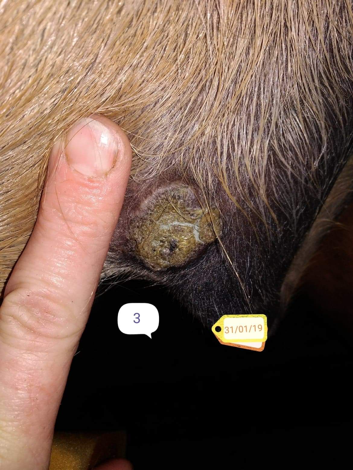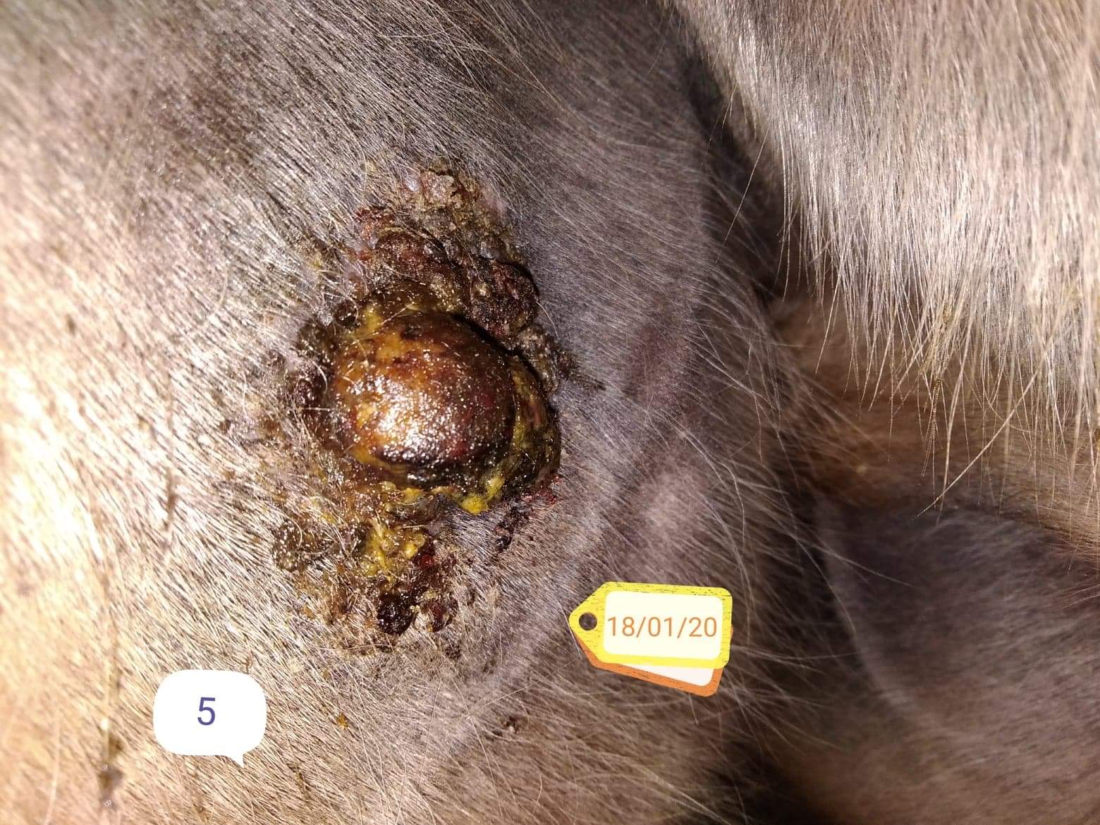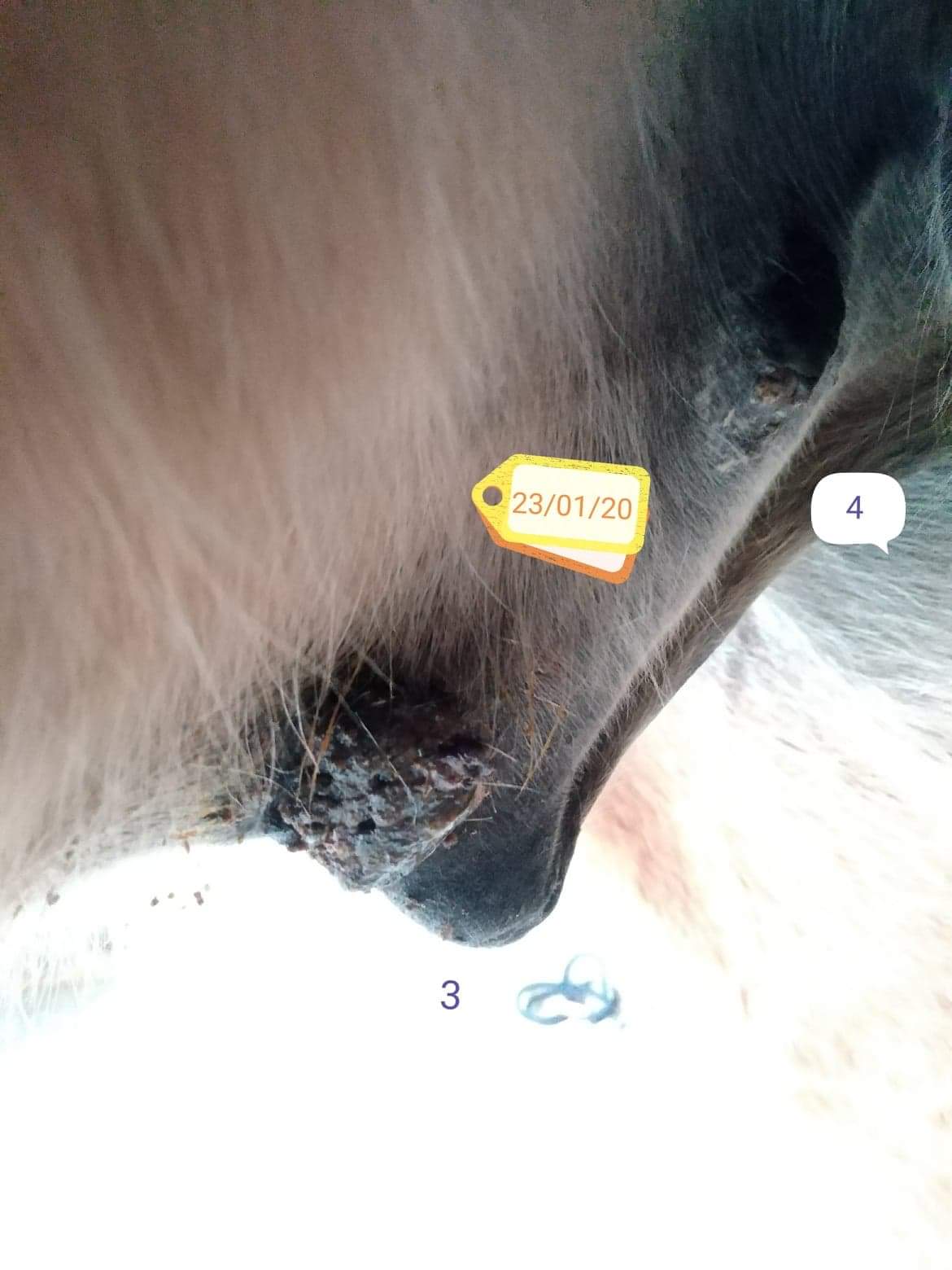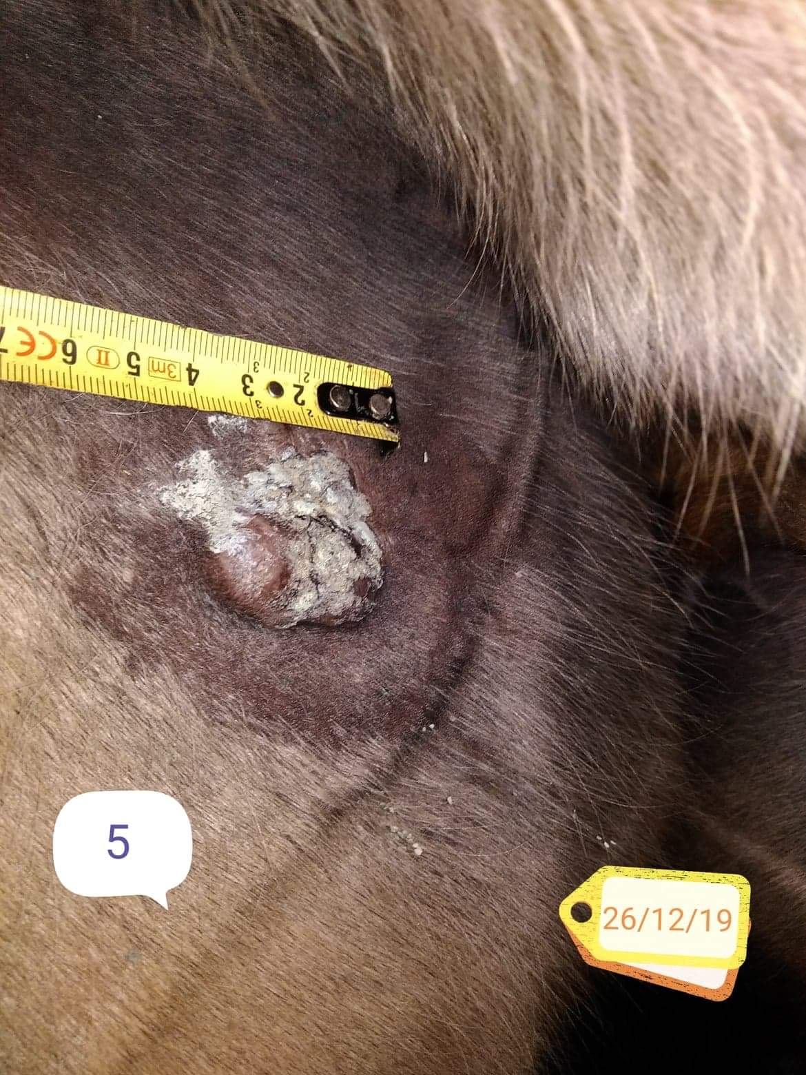 Essaye de prendre des photos sous un angle similaire pour tous les sarcoides afin que nous puissions évaluer le développement.