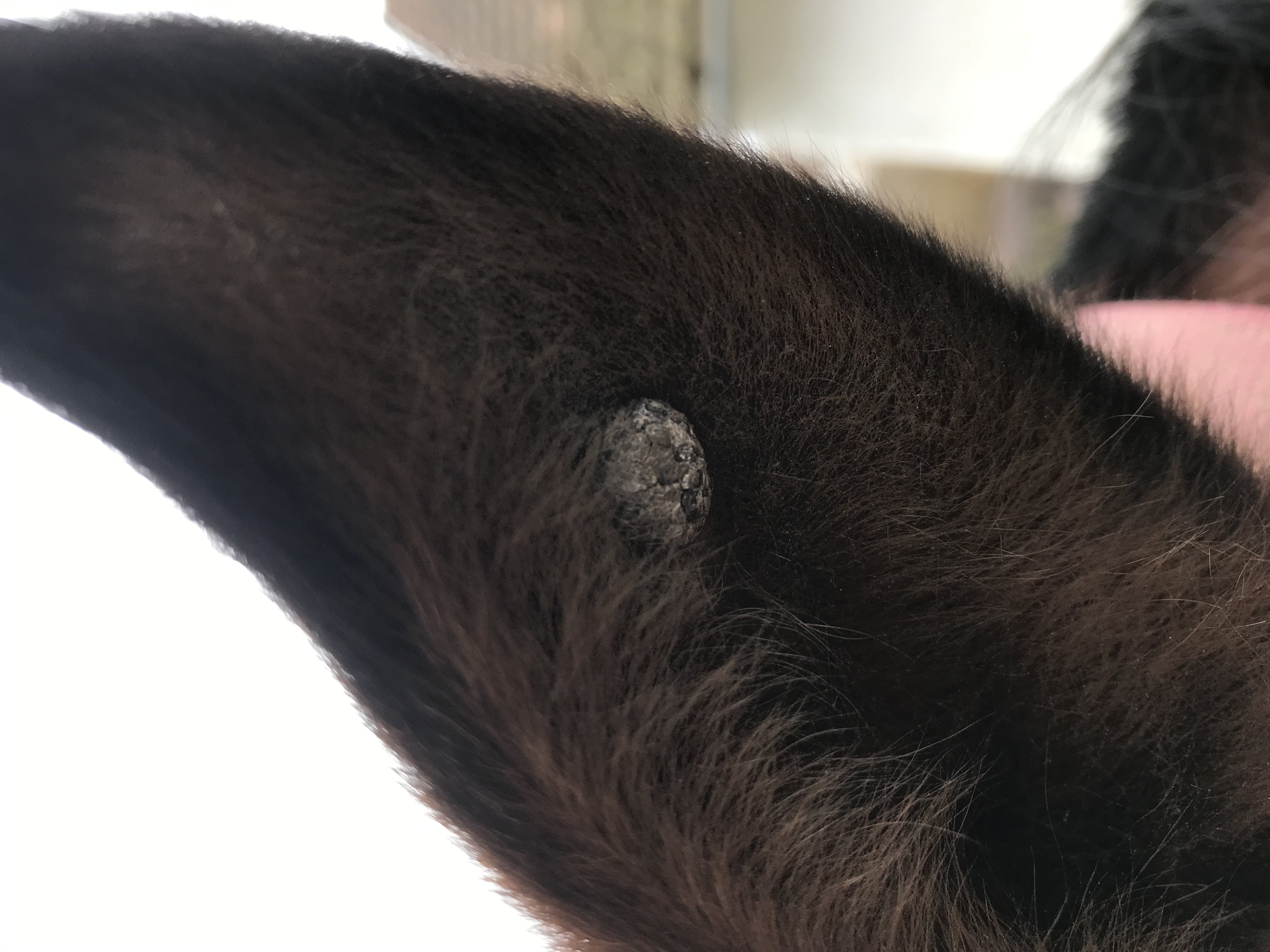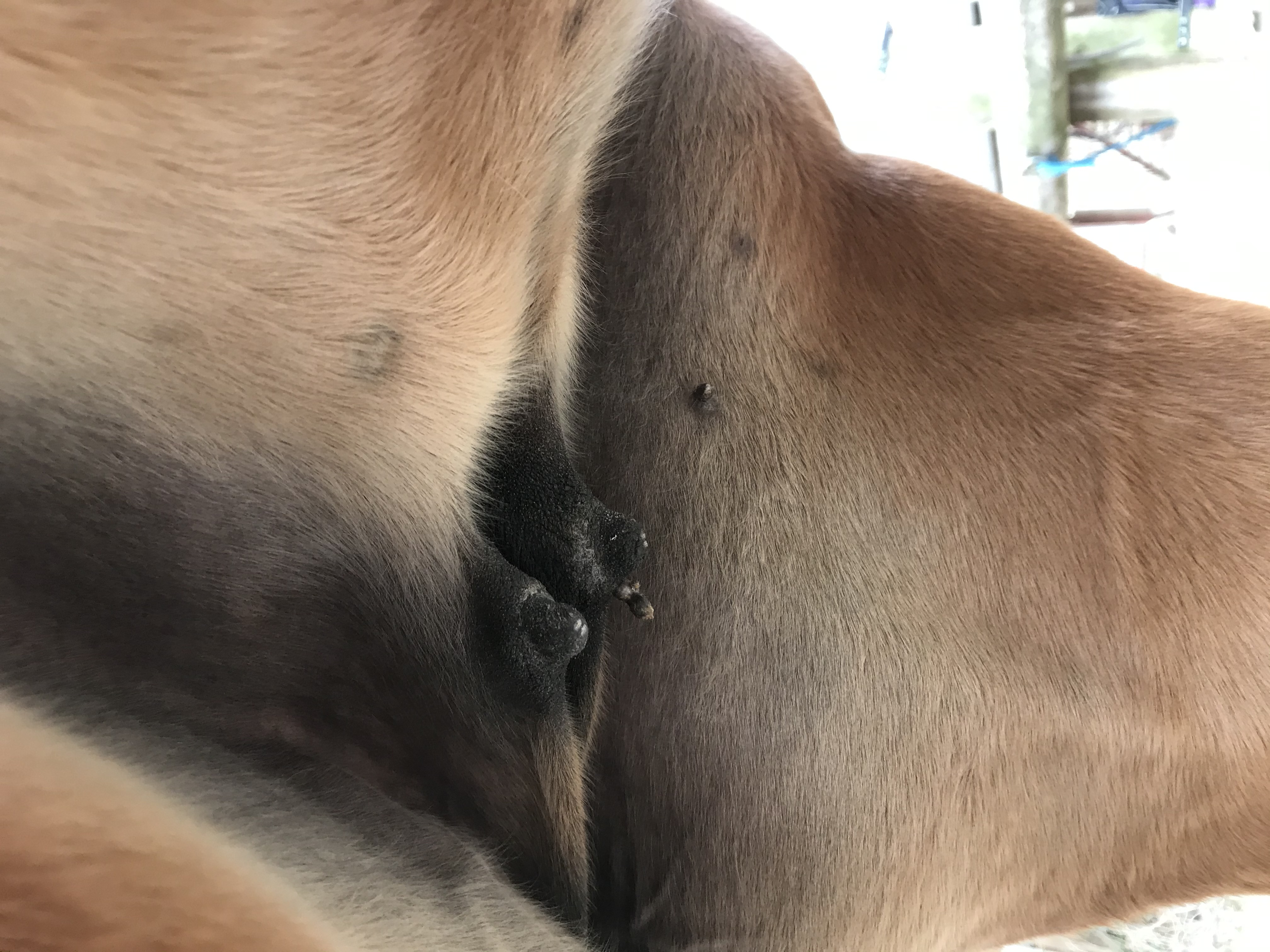 du hast leider nicht nur die Sarkoide am Ohr und die am/beim Euter, sondern auch noch welche am Innenschenkel wie es aussieht.