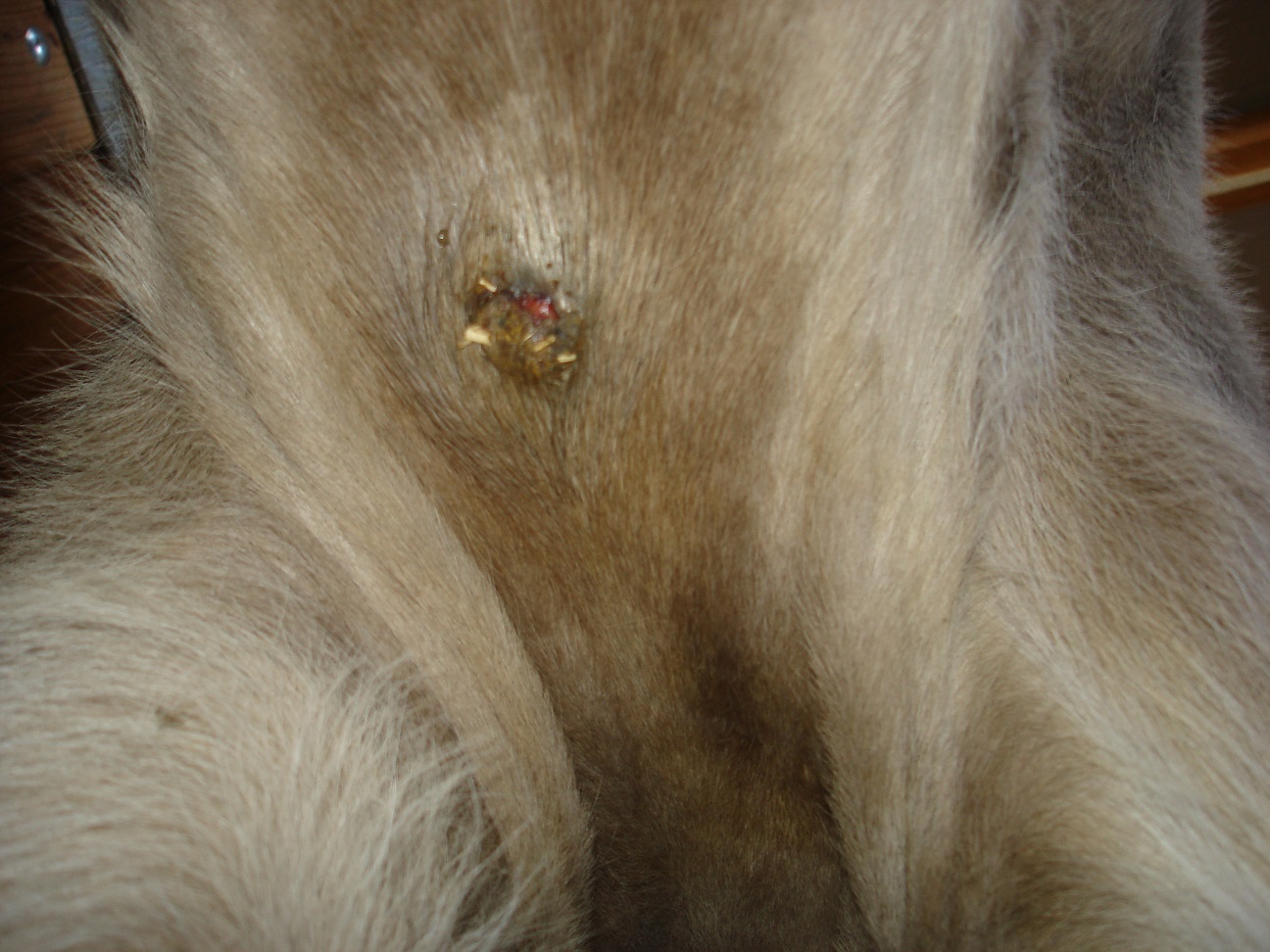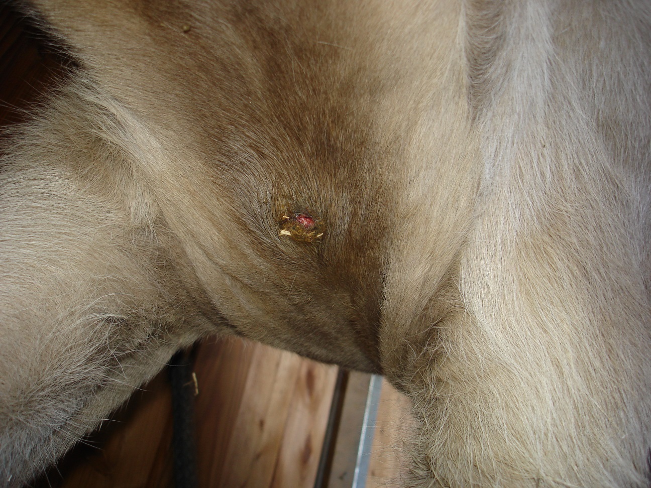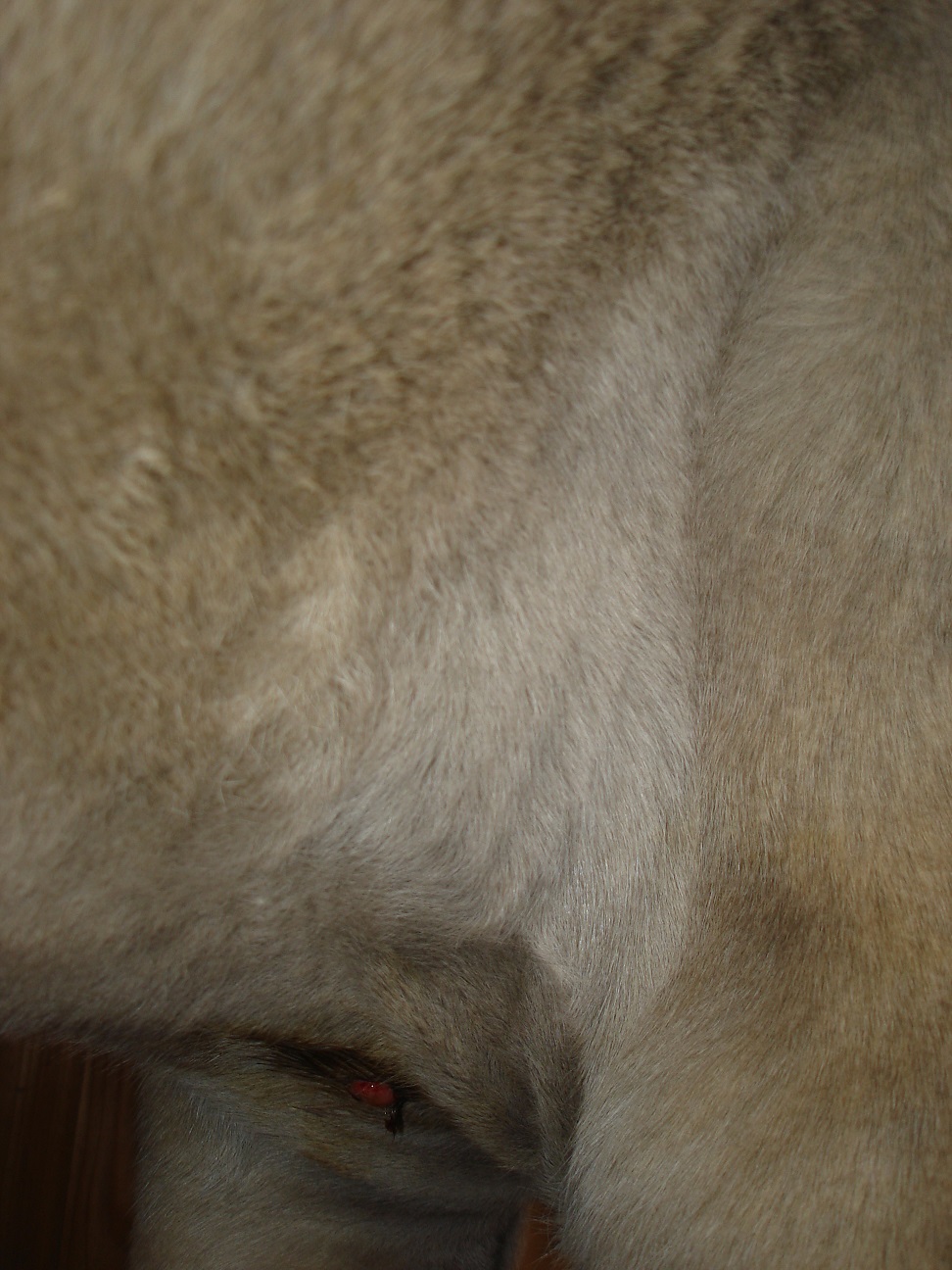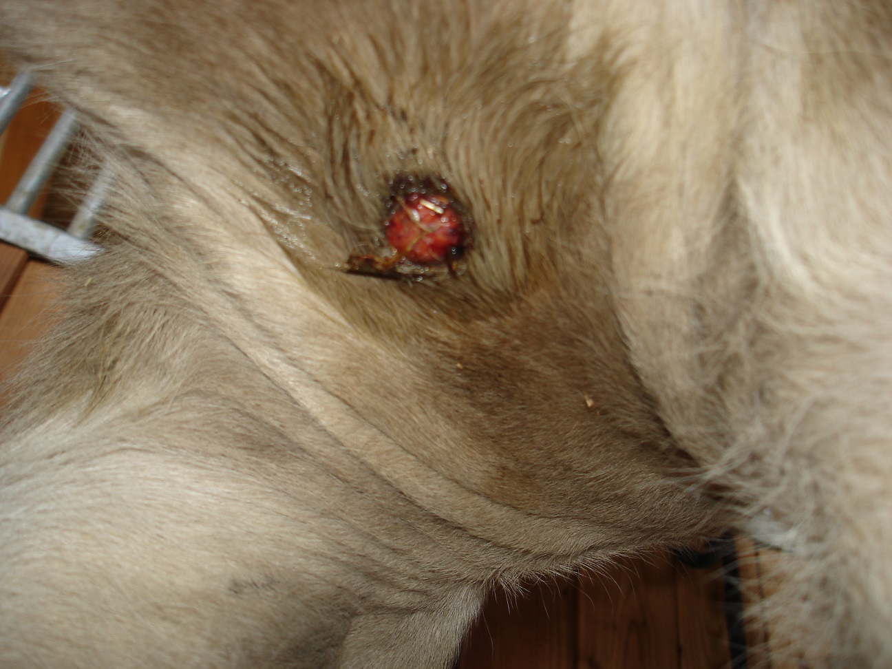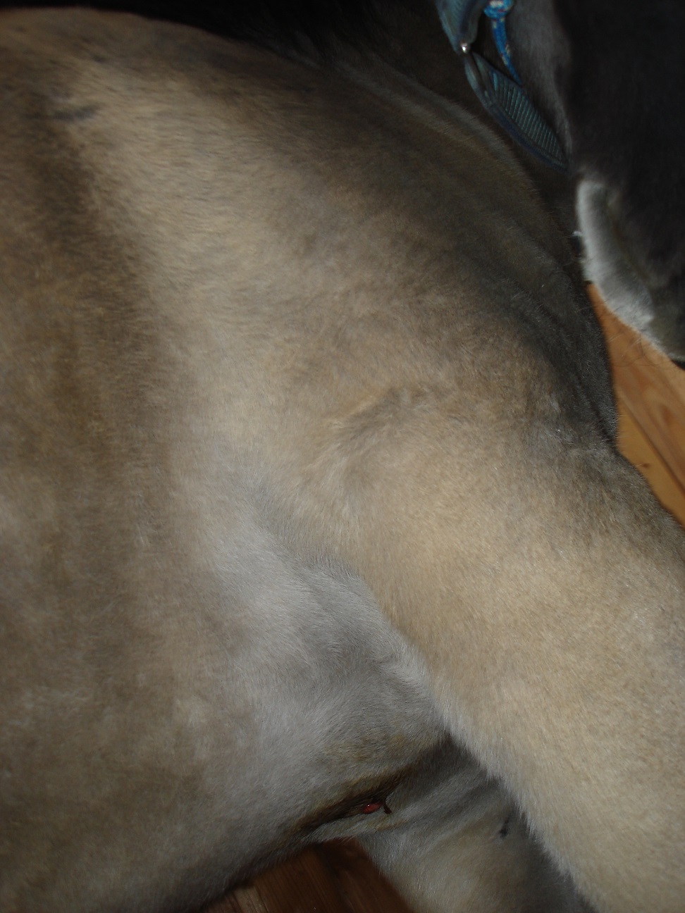 So, das zu knipsen war ein kleines Abenteuer. Sie fand das gar nicht lustig. Ich habe so dein Eindruck, am vorherigen Platz wurde zu viel an dem Sarkoid herumgedocktert. Ich konnte es kaum in Ruhe ansehen. Werde über Ostern versuchen wieder Bilder zu machen.