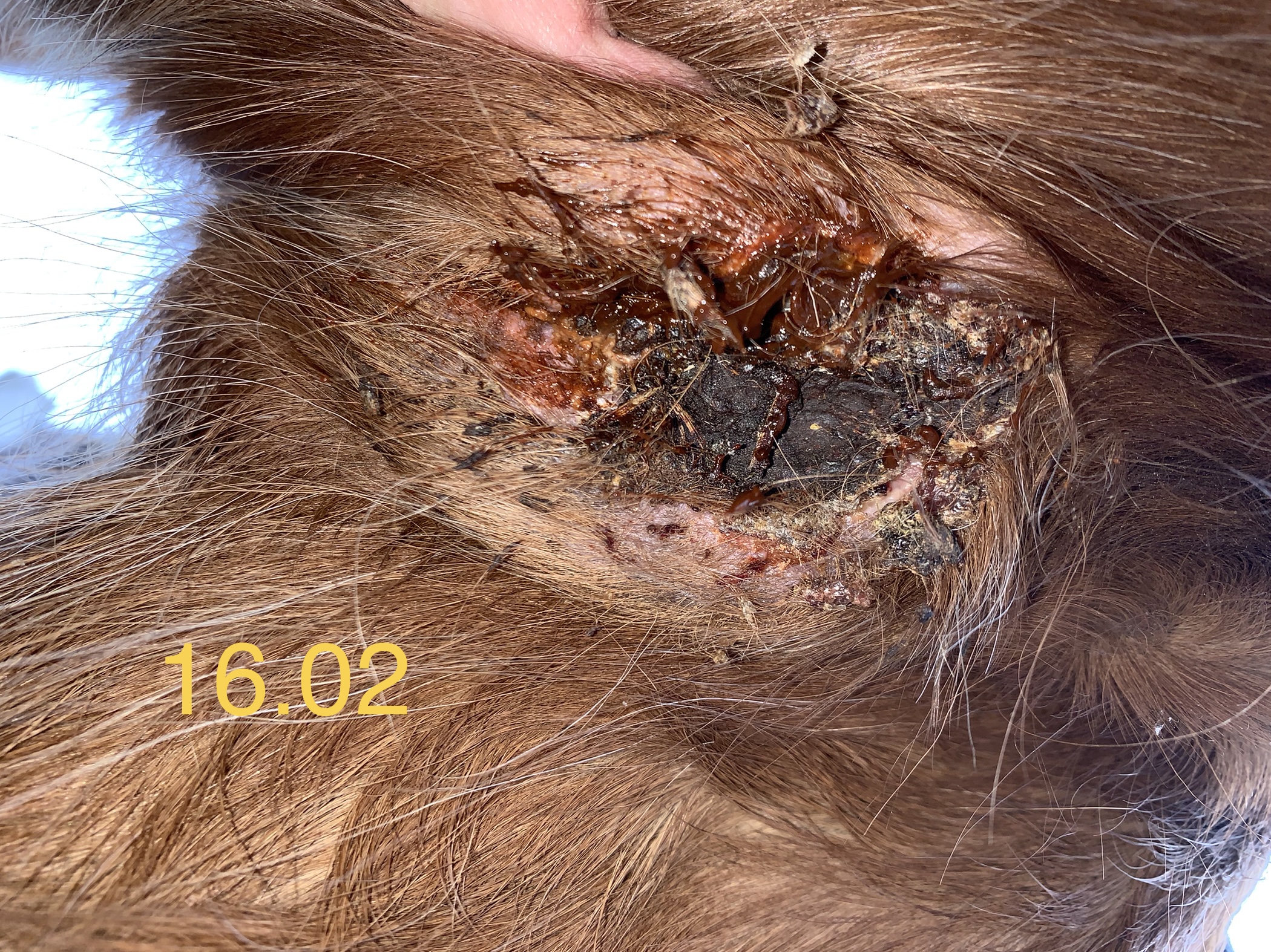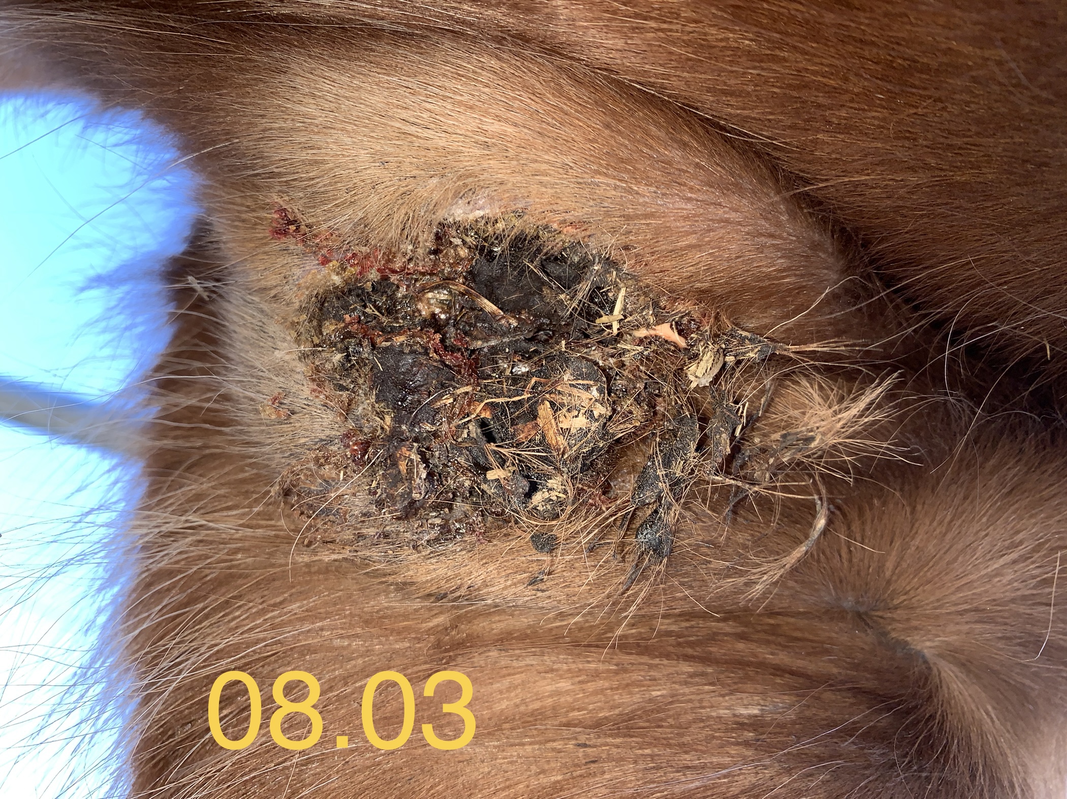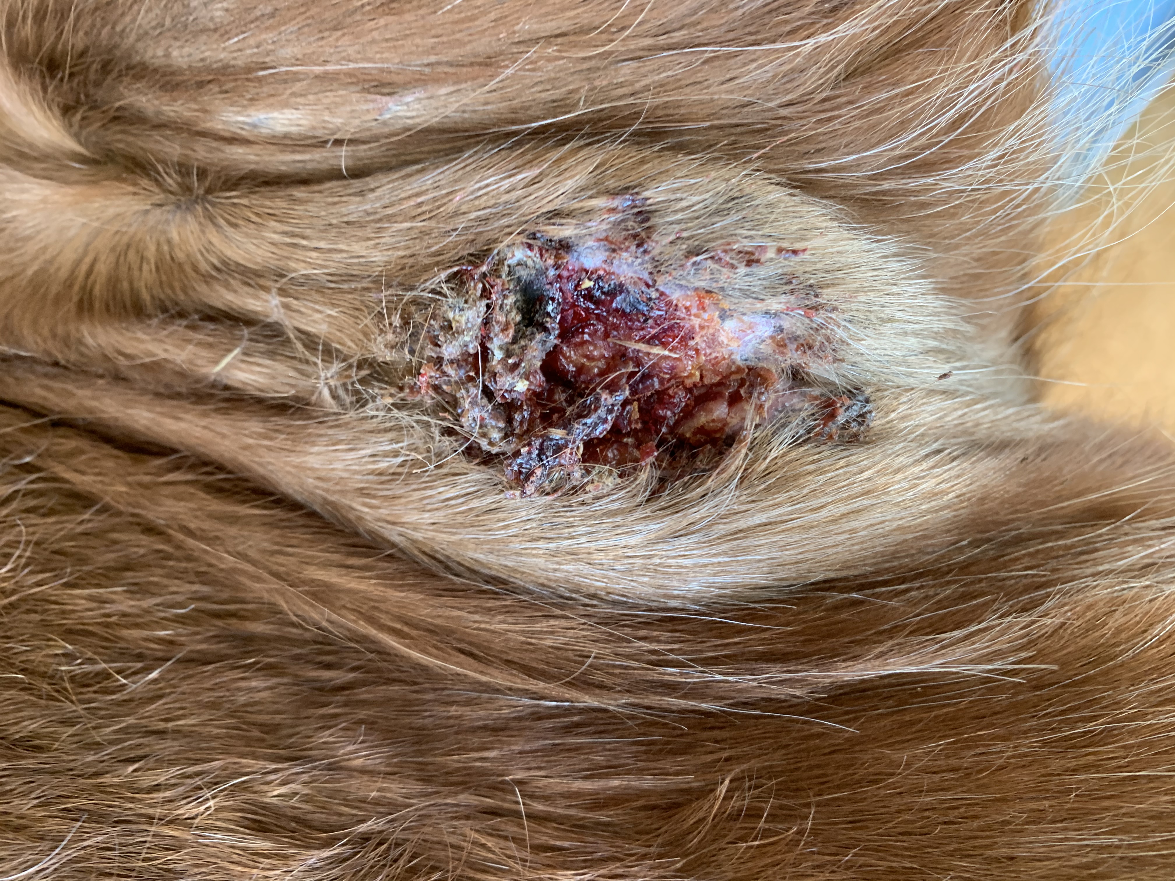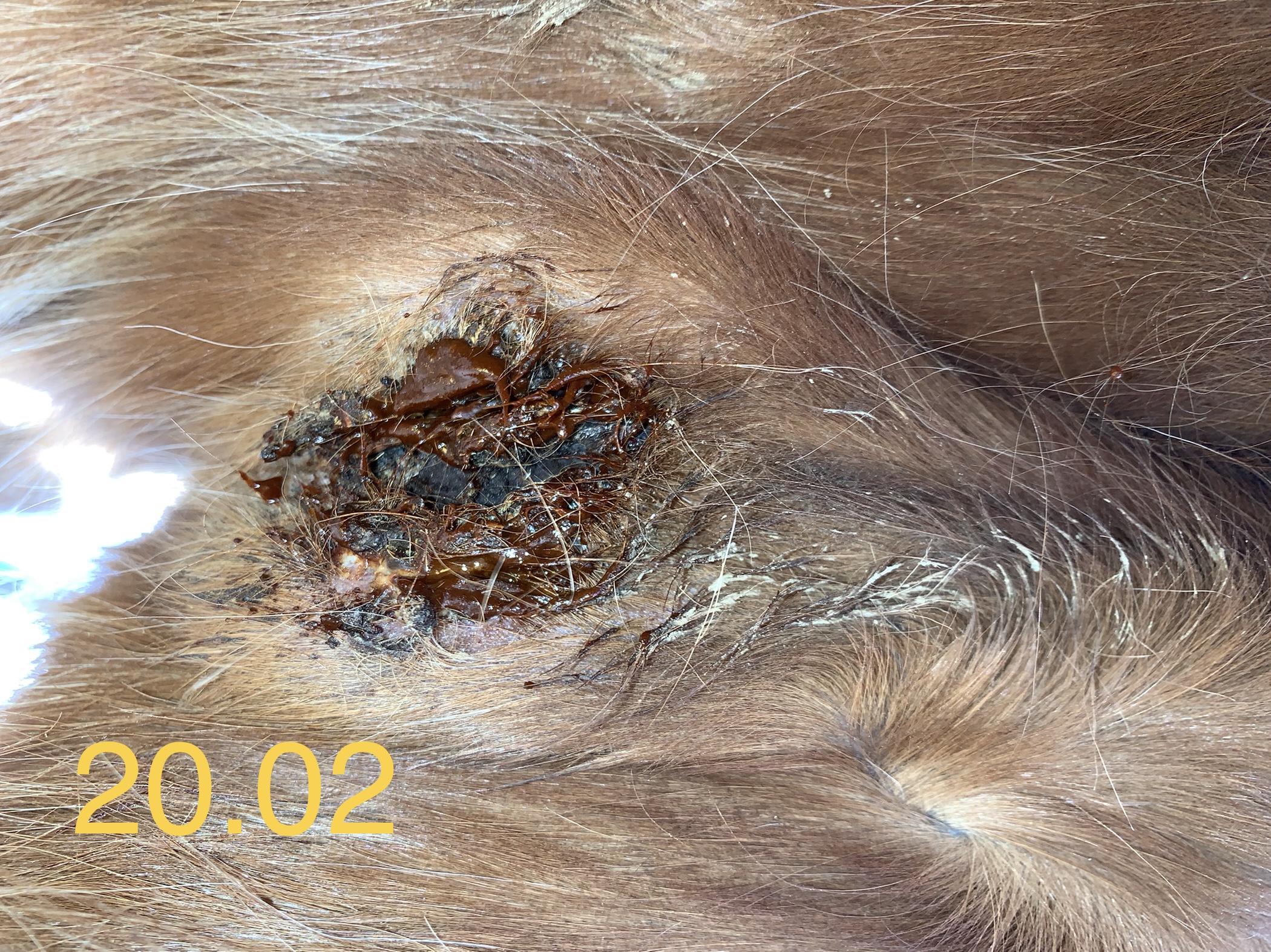 Als er dann am 13.01.2021 zu mir kam (aus Ungarn) fiel mir auf, dass die Warze zwar weg war, aber die Stelle nicht verheilt war. Da dachte ich mir gleich --> das muss ein Sarkoid sein.