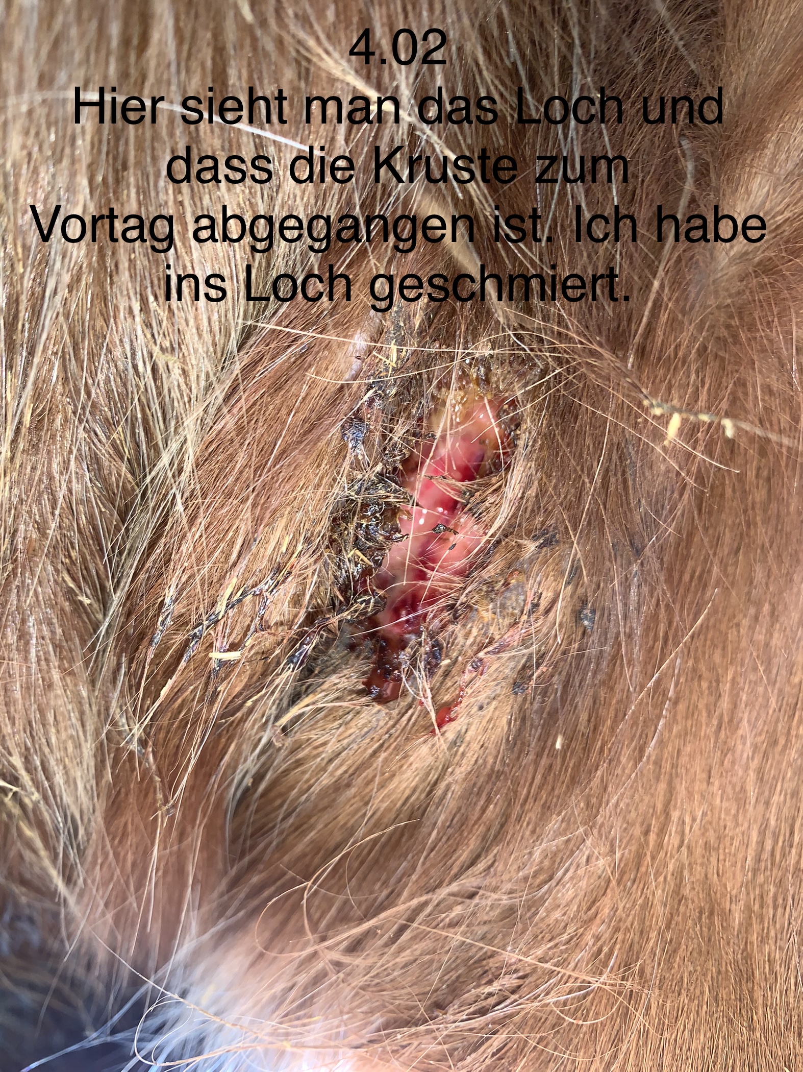 Heute ist Tag 7 mit der Pause und die Kruste ist ab. Entweder abgefallen oder er hat sich irgendwie dran gemacht. Sollte ich jetzt schmieren?