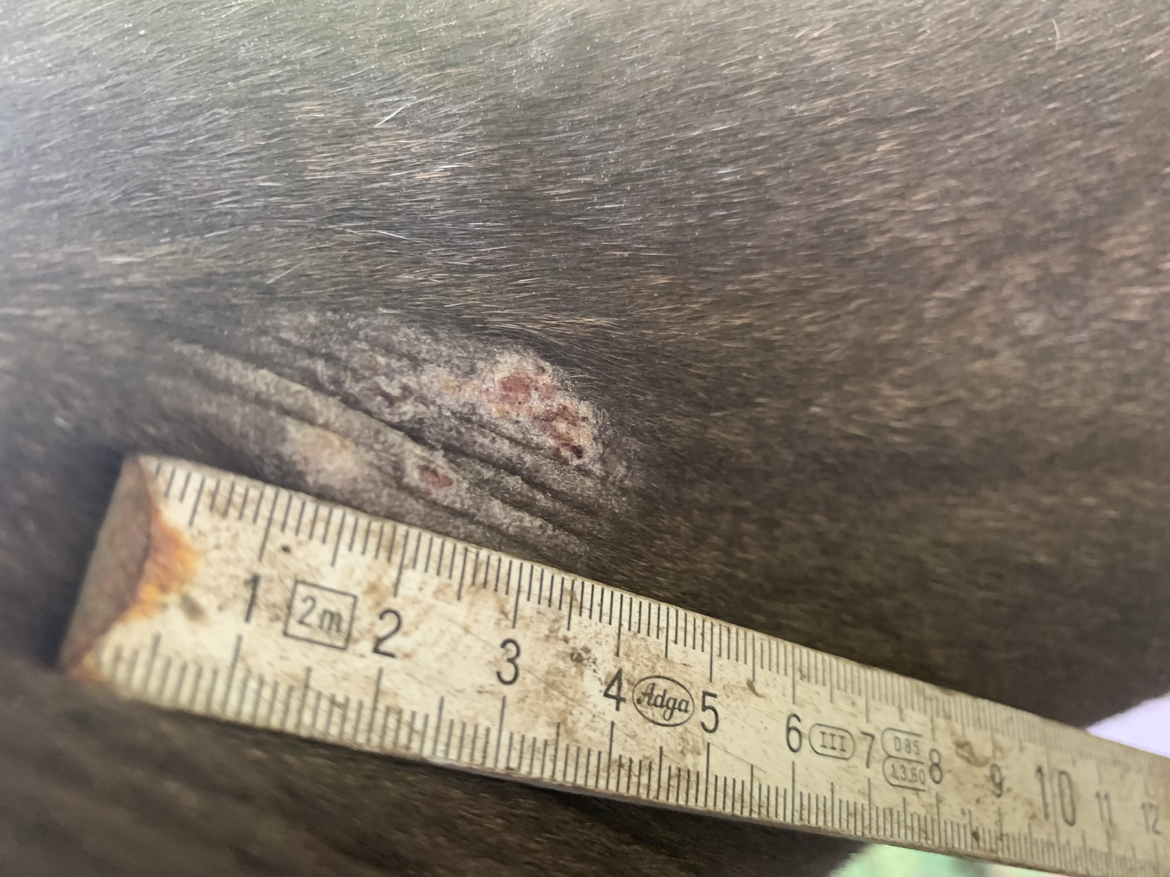 Mein 6-jähriger Shagya-Araber hat ein okkultes Sarkoid in der linken Achsel, also an der Innenseite des Ellenbogens. Es hat einen Durchmesser von 4 cm.