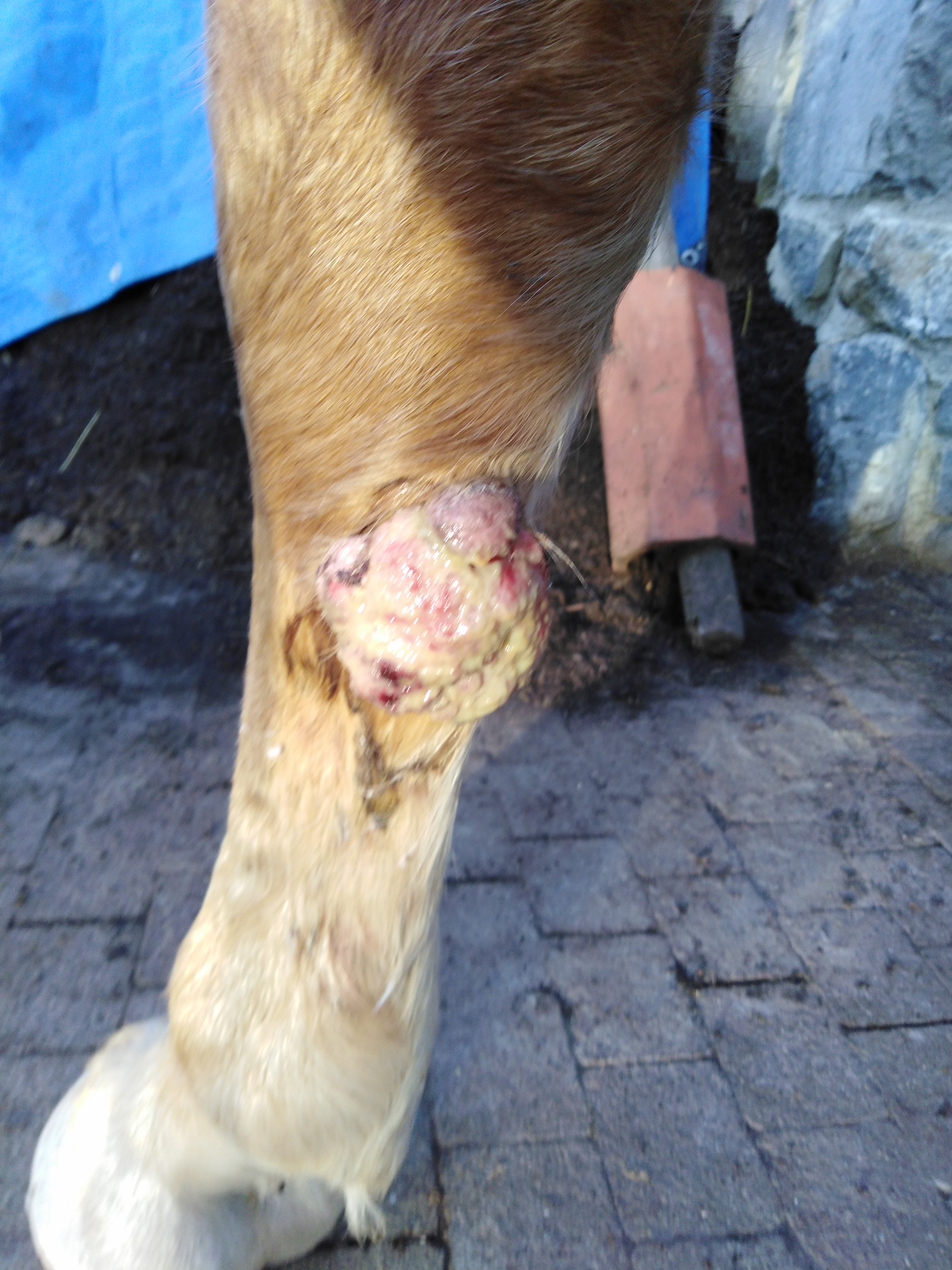 Mein Lusitano sechs Jahre alt aus Spanien hat ein ES am Vorderbein.