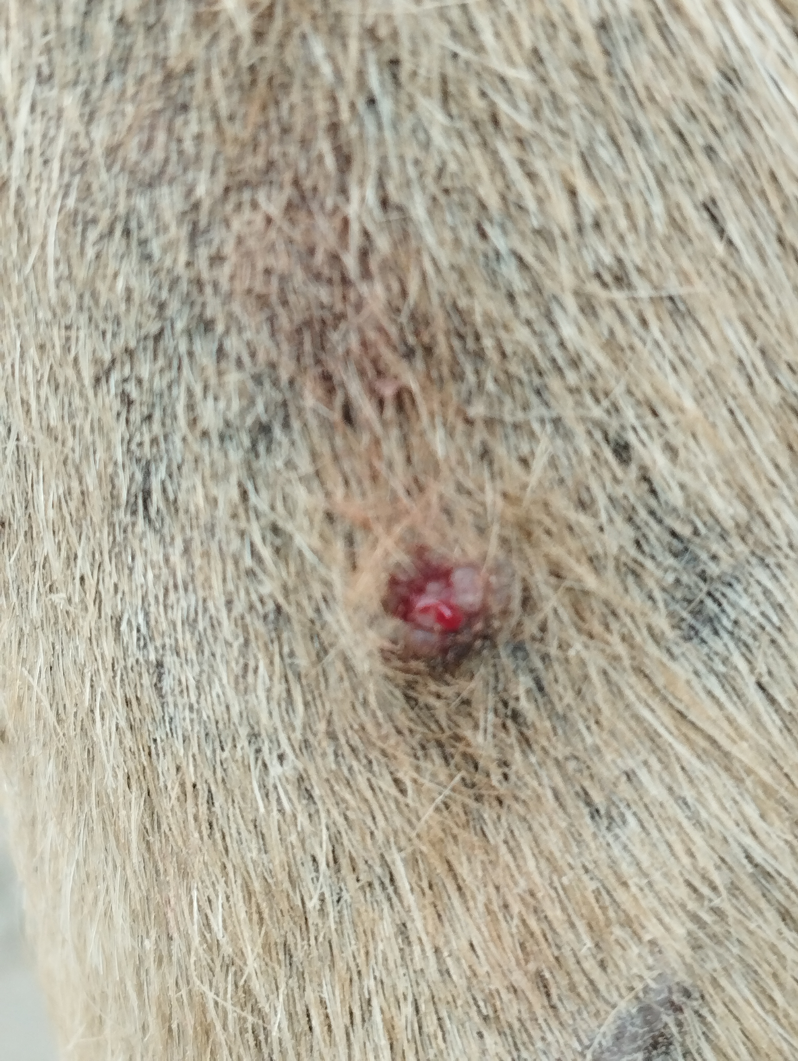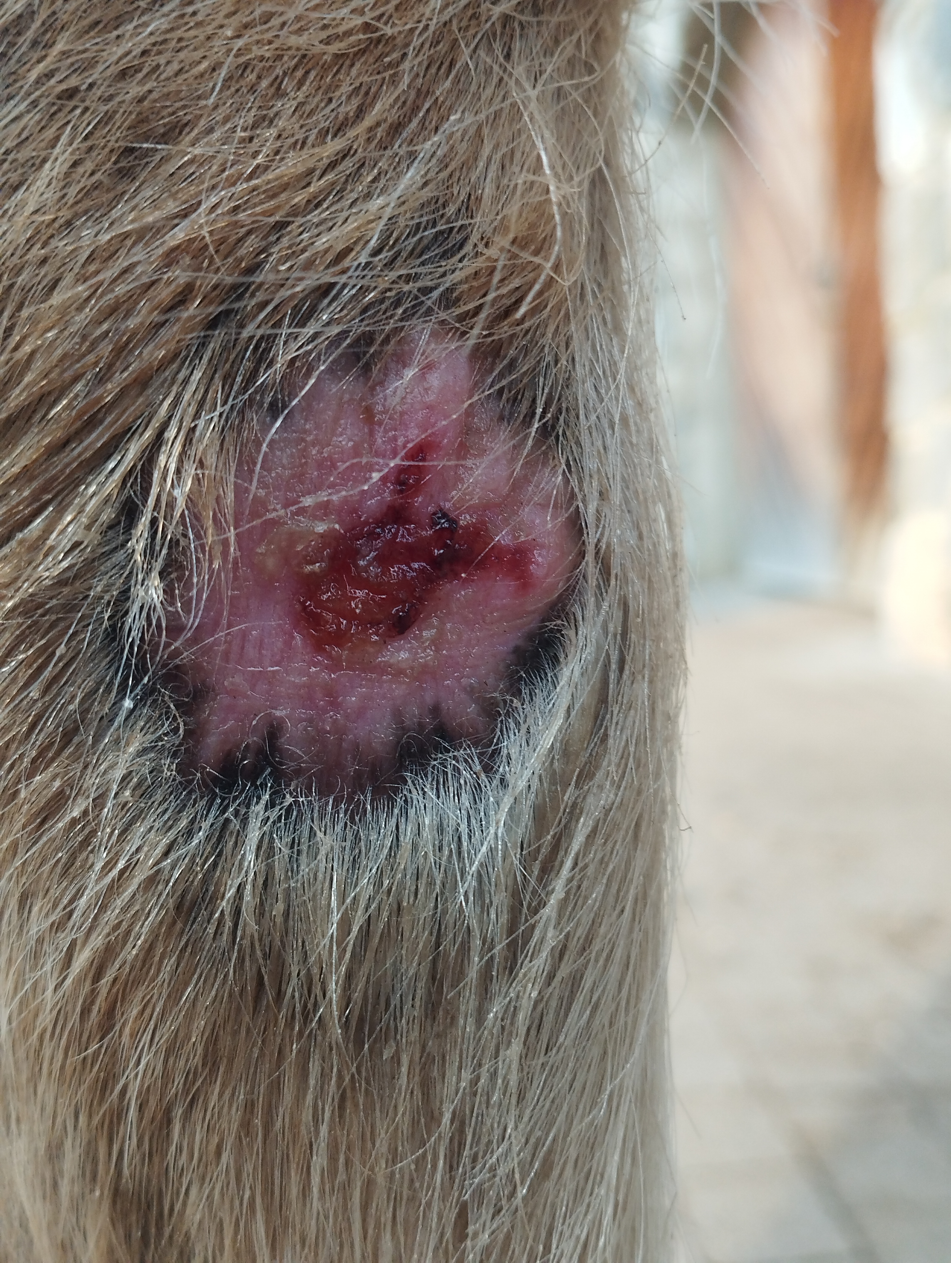 Hallo liebe Mitglieder ich war länger nicht hier. Mein Oldie hatte einen Rehe Schub und eine Weile sah es sehr schlecht aus und ich musste meine ganze Aufmerksamkeit im zuwenden. Habe gerade erst eure Antworten gesehen. Werde morgen gleich messen und ordentliche Fotos machen. Leider ist es nochmal sehr gewachsen und ich werde morgen noch mit einer Tierärztin mit mehr Sarkoid Erfahrung die mir die vet med Uni Wien empfohlen hat in meiner Region sprechen. Anbei mal ein aktuelles Foto von gestern und die Info das wir es immoment abdecken damit er es nicht mehr aufreisst offensichtlich macht das aber die sache viel schlimmer.