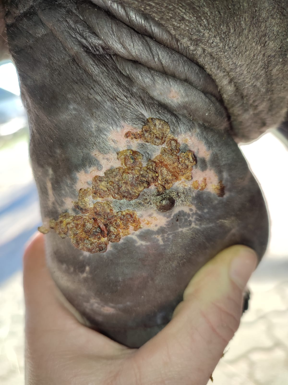 Letztes Jahr im Sommer habe ich angefangen das Sarkoid über das Futter zu 'behandeln', dies hat auch eine Reaktion ausgelöst (