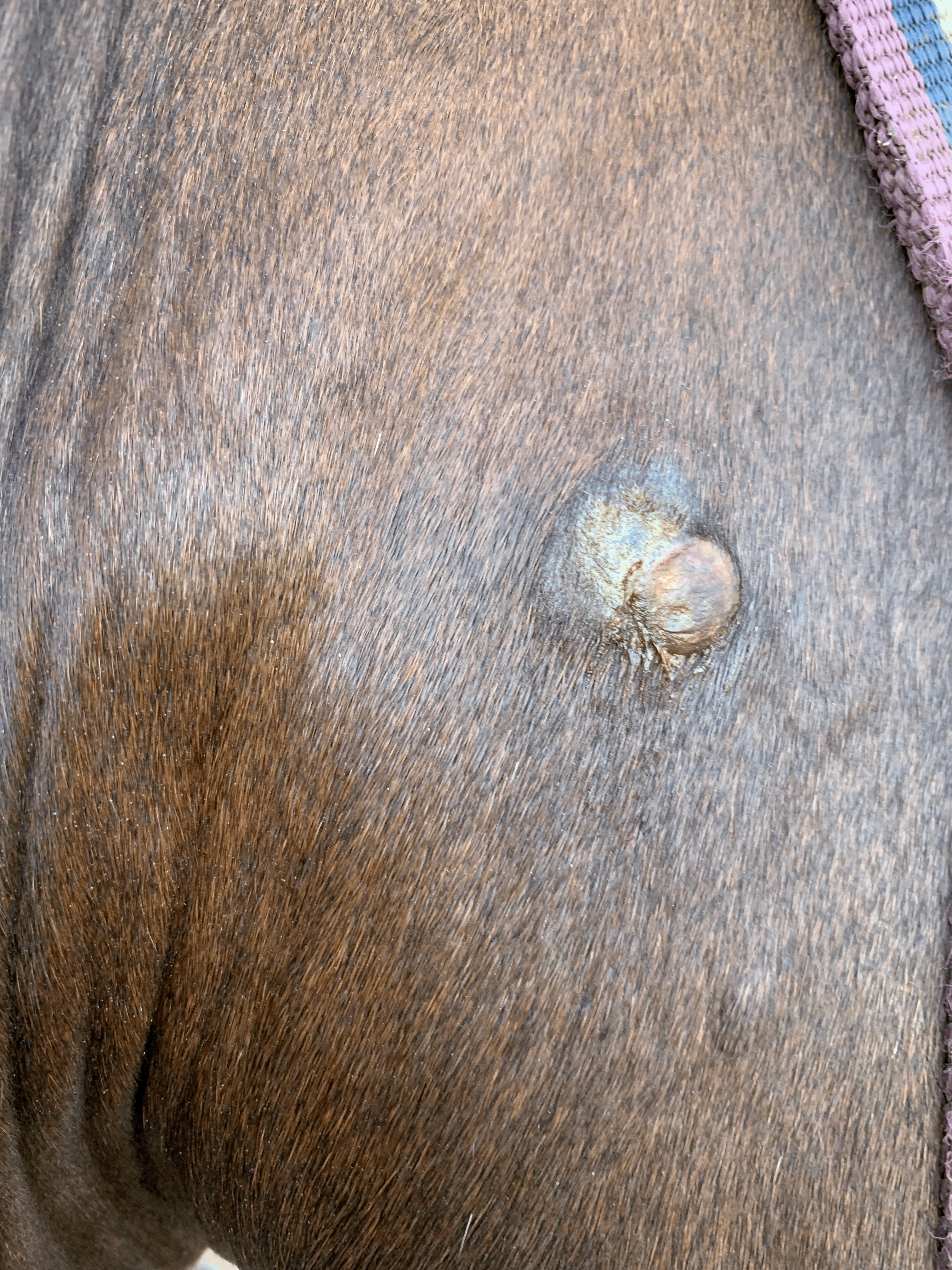 Als ich die Stute im Sommer 2022 gekauft habe, hatte sie eine kleine Warzen ähnliche Veränderung unter dem linken Auge.