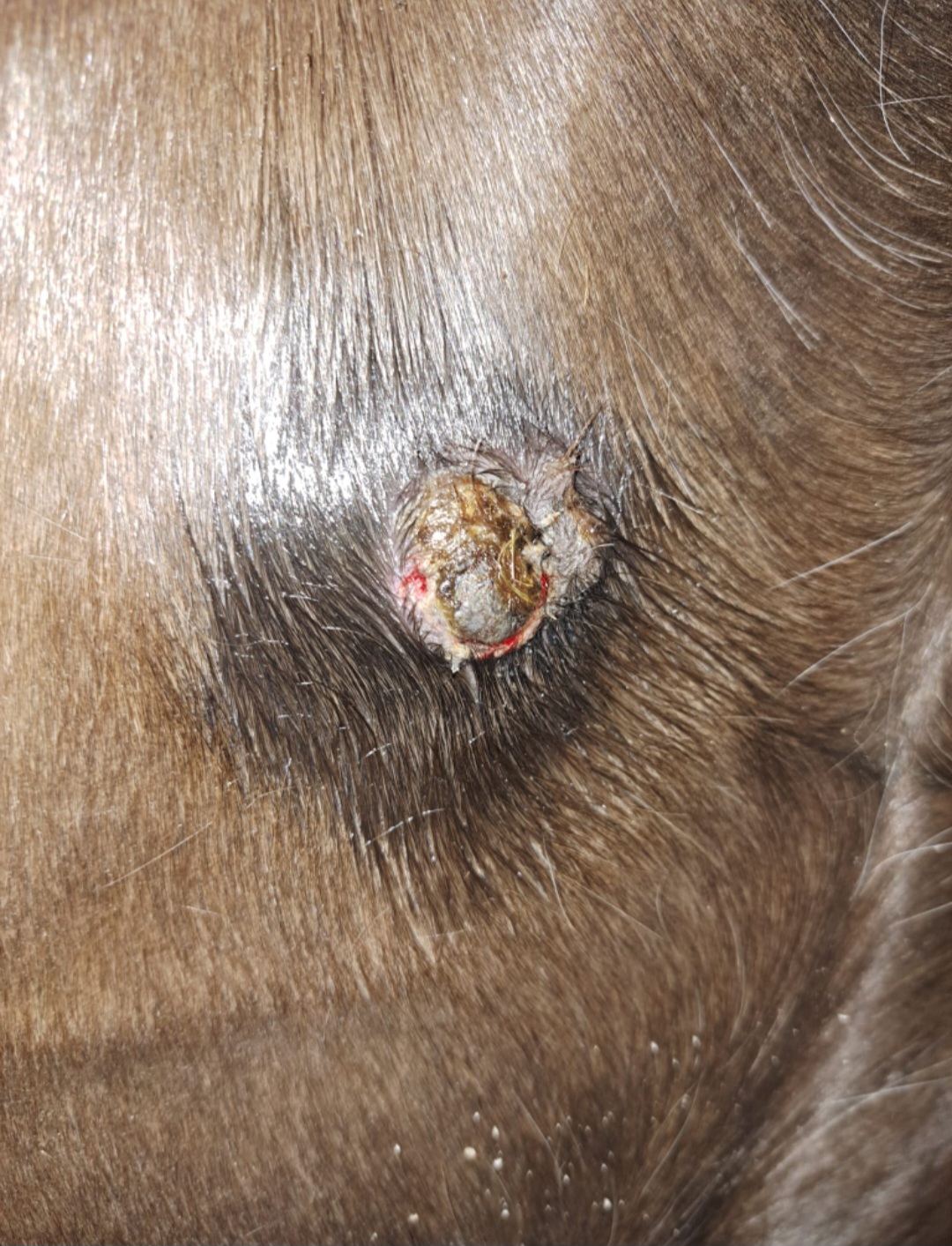 Was schmiere ich in den 4 Tagen Pause auf das Sarkoid? Heute ist wieder etwas abgefallen und hat geblutet. Da gehen die Fliegen dann so stark dran, dass ich unsicher bin, ob das so optimal ist.