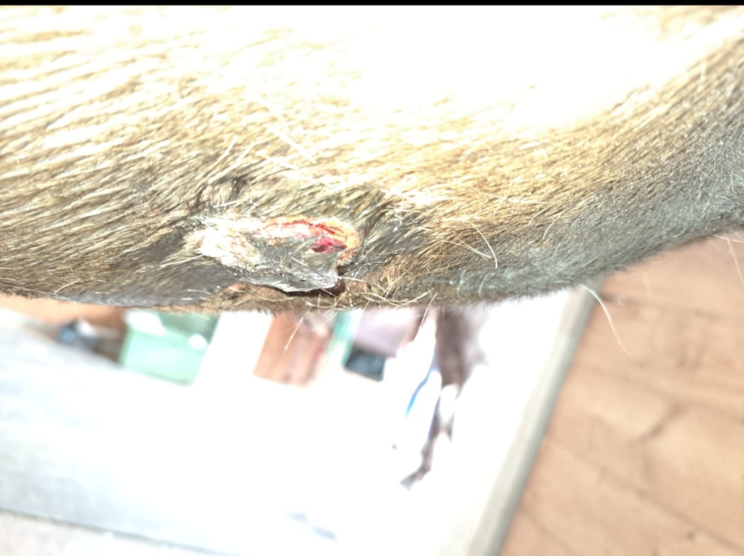 - Die letzten Wochen hat es immer wieder geblutet, sodass ich es nur sauber gehalten habe und eine dünne Salbe draufgemacht, damit die Fliegen nicht rangehen. Leider ist es jetzt wieder wo warm, dass die Fliegen sich darauf stürzen.