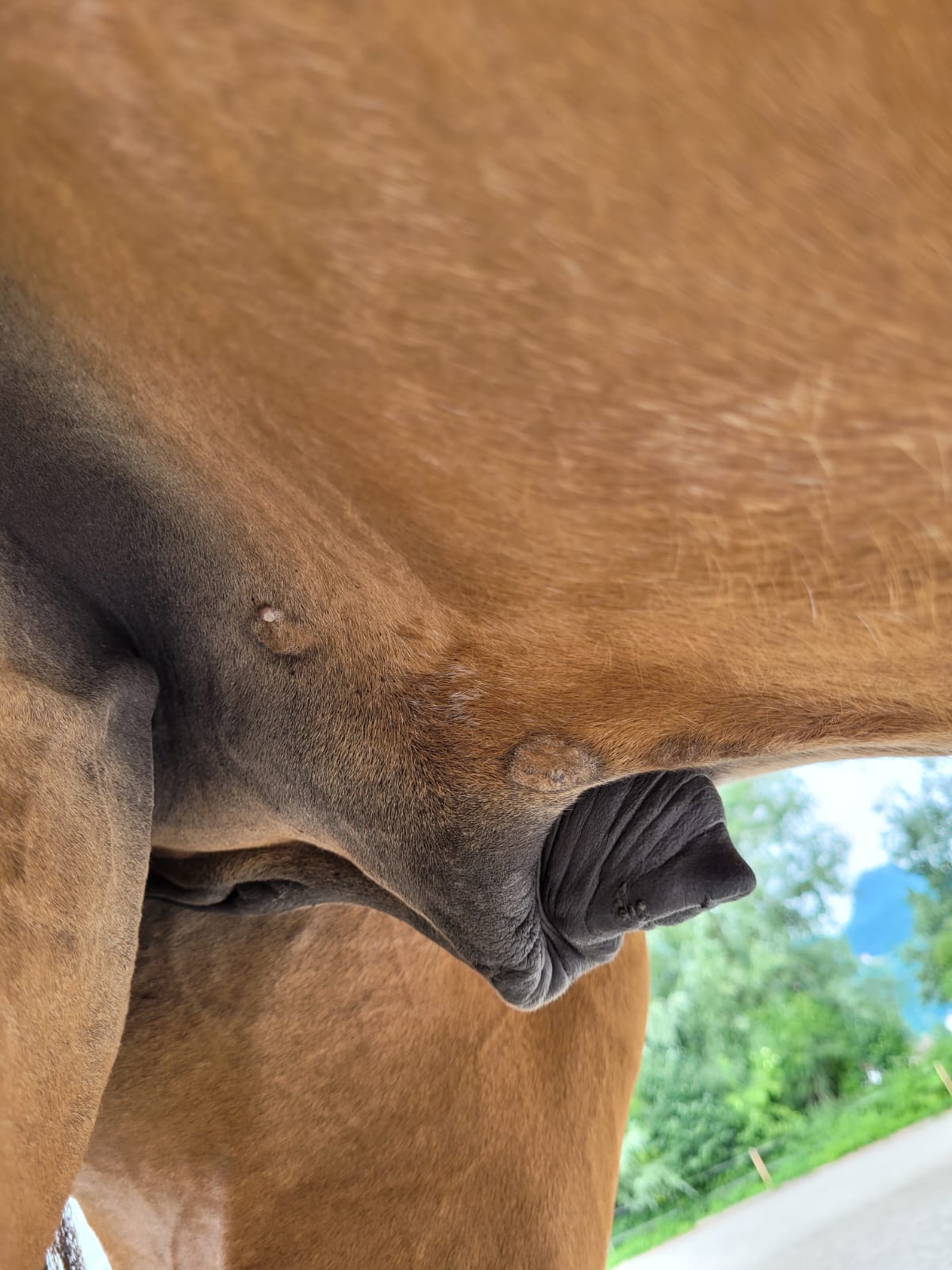 Mein 5 1/2 jähriger PRE Wallach bekam gegen Ende Mai 2023 zwei "Warzen" an der Schlauchtasche und an der Schlauchspitze selbst. (Haltungsform: Box über Nacht, untertags Paddock. Sein Kumpel hatte ein Sarkoid am Auge.)