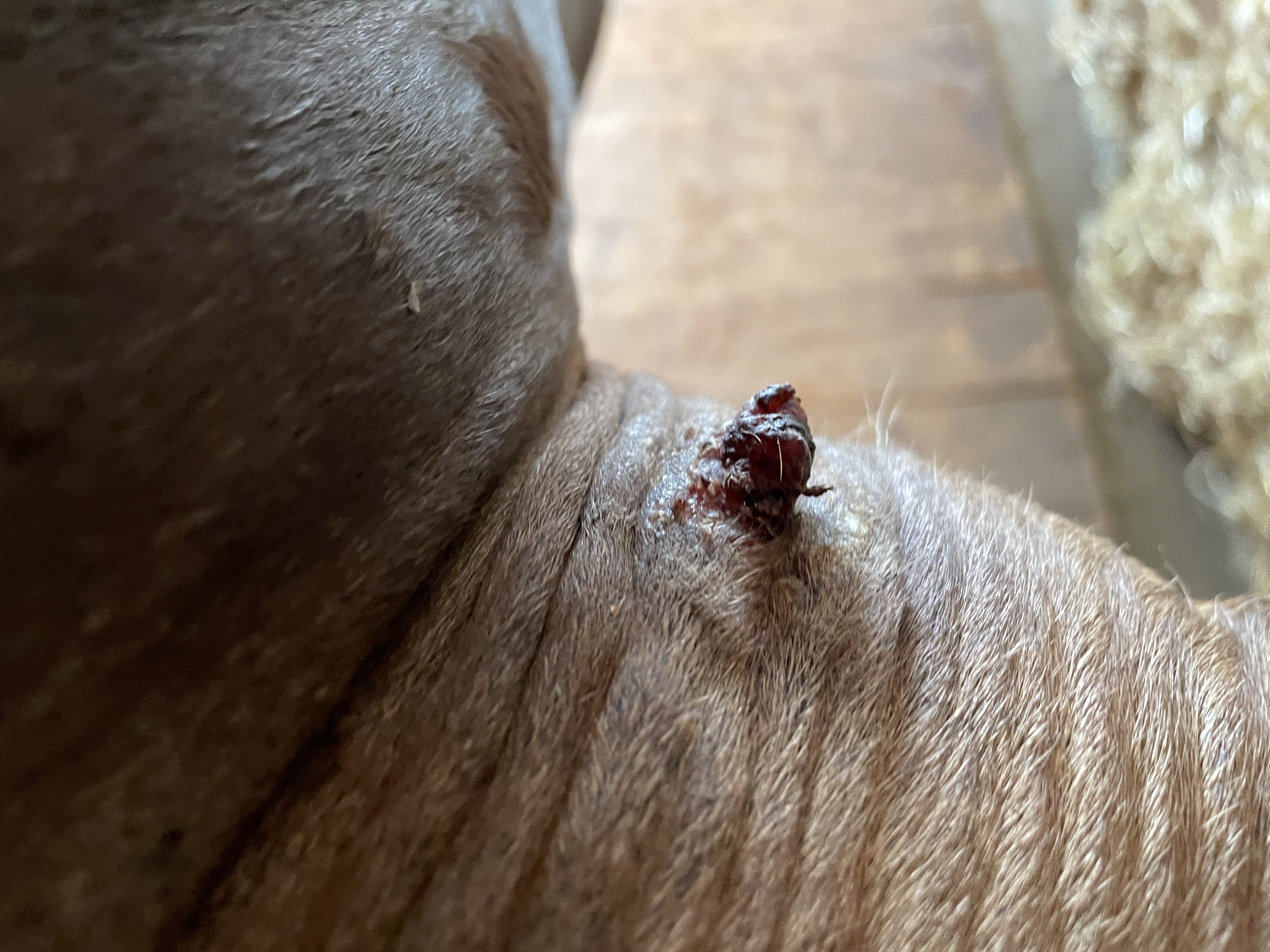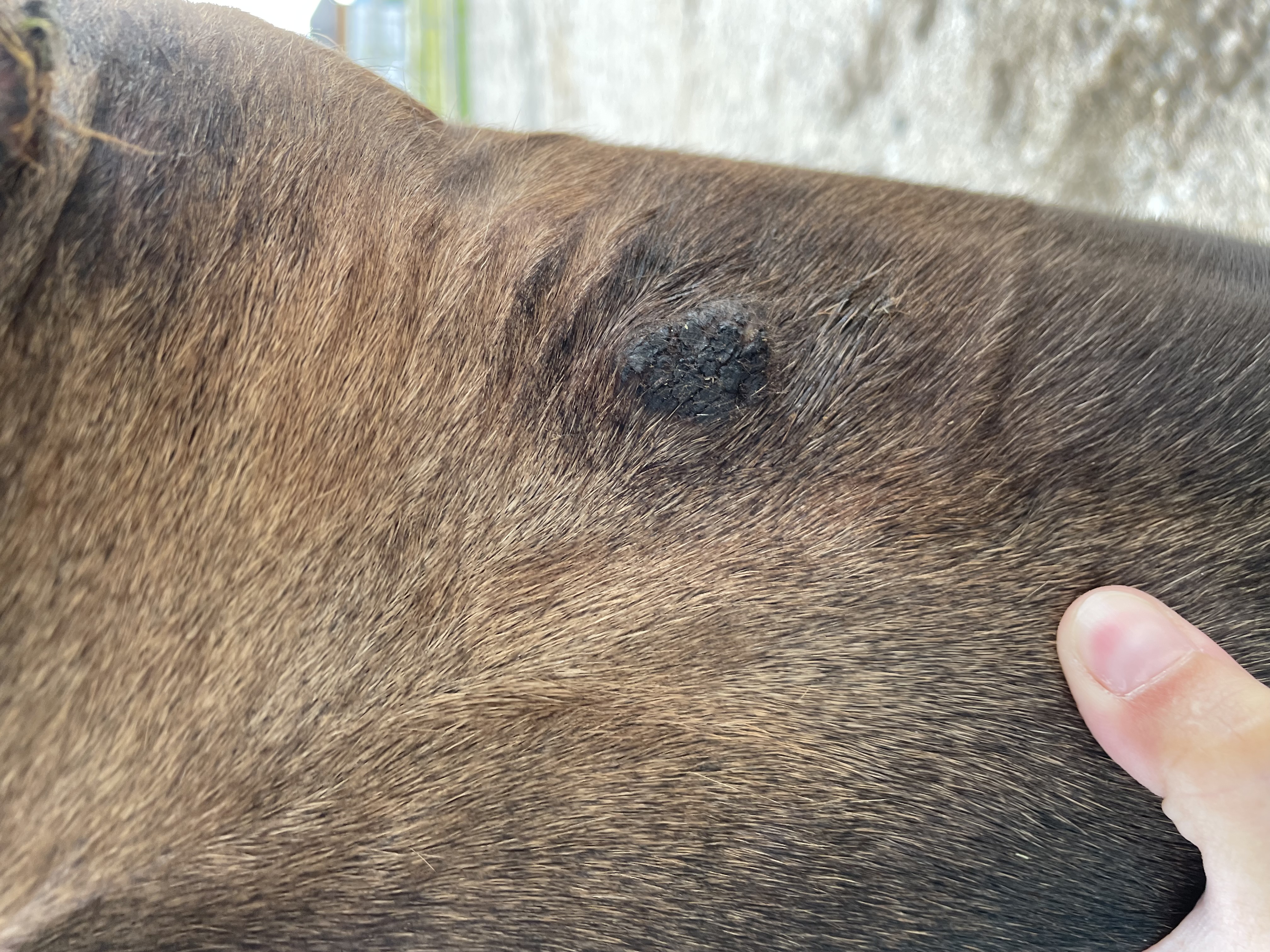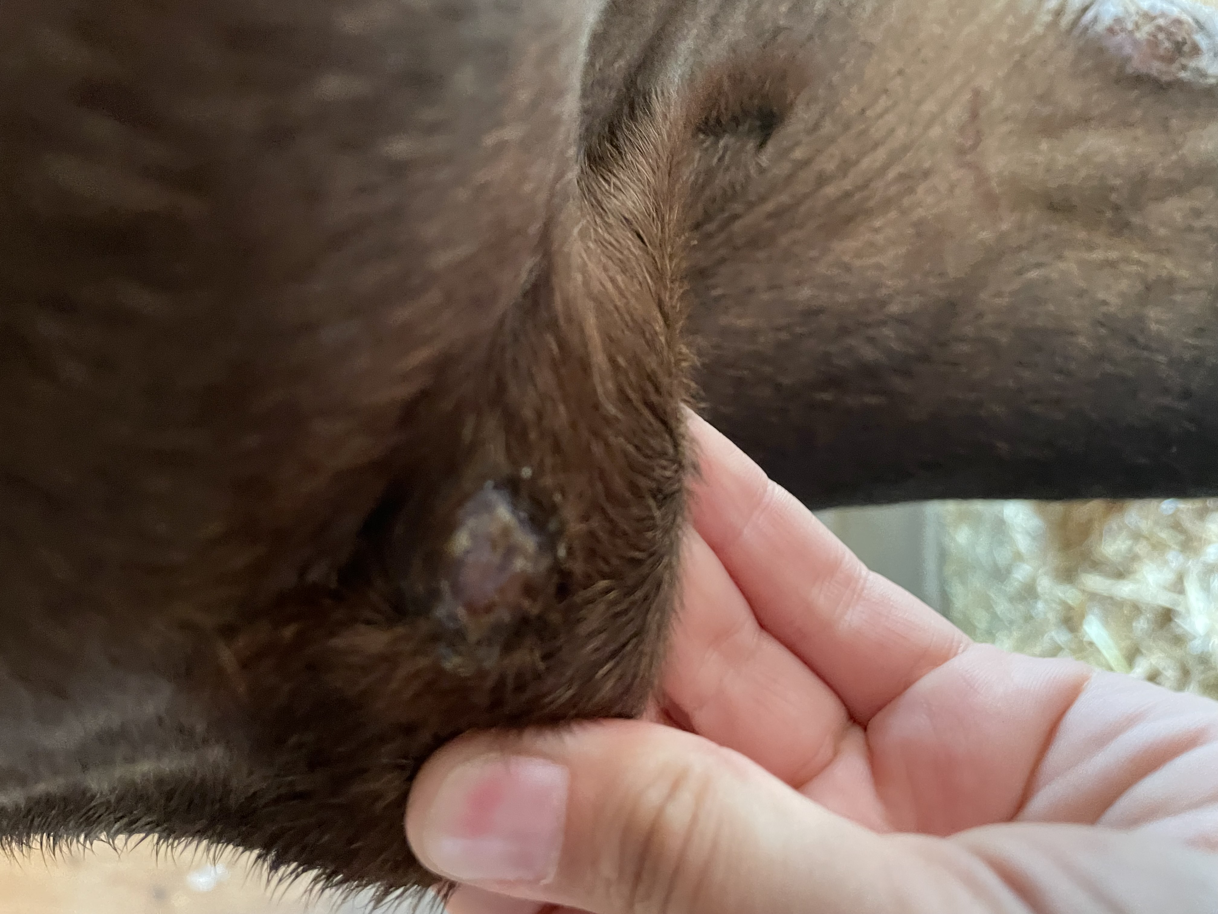 Ferdi ist ein 7-jähriger Oldenburger Wallach und ist im dressursport unterwegs. Das erste Sarkoid hat sich an seiner kastrationsnarbe gebildet und ist eigentlich bis jetzt gleich bleibend. Weitere hat er an der Brust und auch an der Axel. Ich füttere von iwest magnobios und magnolythe s100 dazu seit ein paar Wochen. Sonst habe ich schon mit acliclovir und drachenblut probiert diese Dinger weg zu bekommen, leider erfolglos