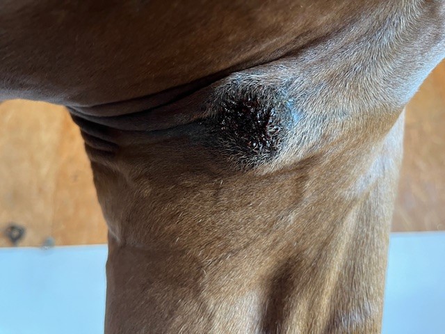 mein 7 Jähriger Araber Wallach hat ein Sarkoid in der Ellenbogen Region am bauch. Eigtl ist es ziemlich schnell abgefallen nach der Behandlung mit Dermequin - leider ist es dann wieder aufgeplatzt und heilt seit dem nicht mehr. Seit ein paar Wochen hat sich unter dem eigtl Sarkoid eine Verhärtung gebildet, von der ich nicht weiß ob diese einfach aus einer Entzündung heraus entstanden ist oder ob hier auch infiziertes Gewebe vorhanden ist. TA sagt immer weiter schmieren.