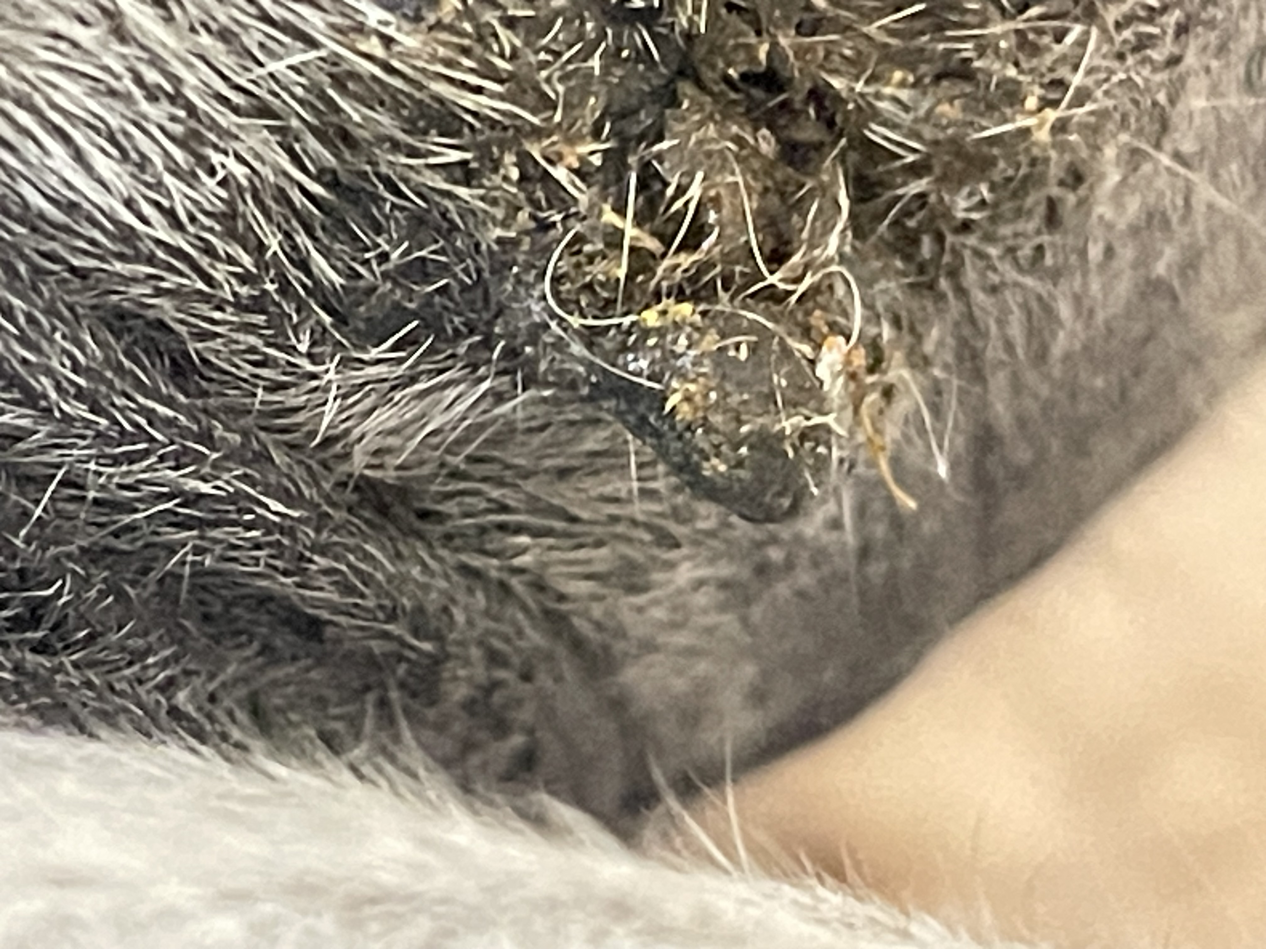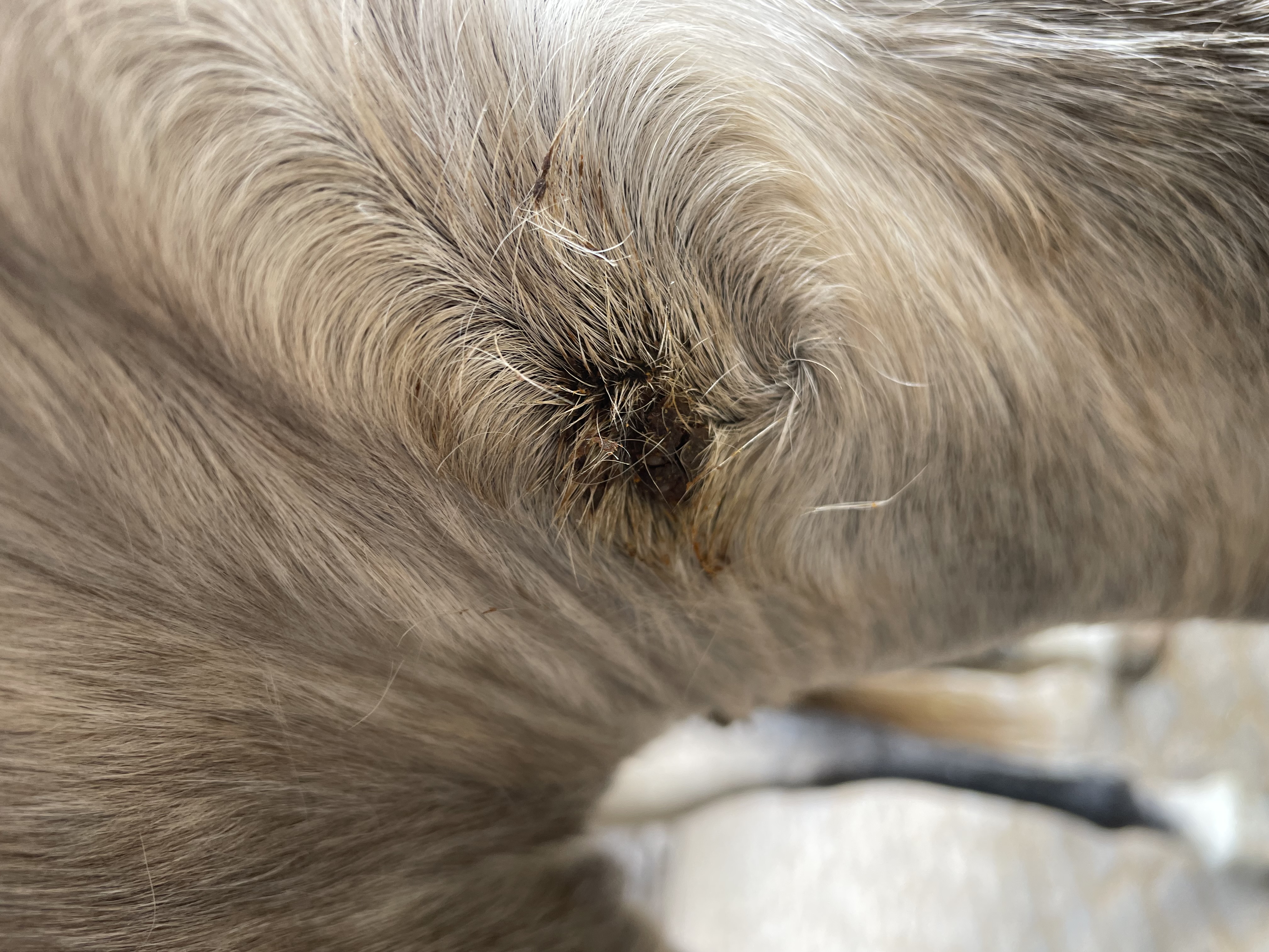 Letztes Jahr Ende August hatte sie zwei komische Flecken an der Brust. Insektenstiche? Gingen aber nicht weg. Im Oktober, als die Tierärztin sowieso da war, habe ich gefragt. Vorher hatte ich nochmal genau geguckt und festgestellt, dass sie hinten zwischen den Schenkeln noch so ein komisches Ding hatte. Die Tierärztin meinte, es seien tatsächlich Sarkoide.