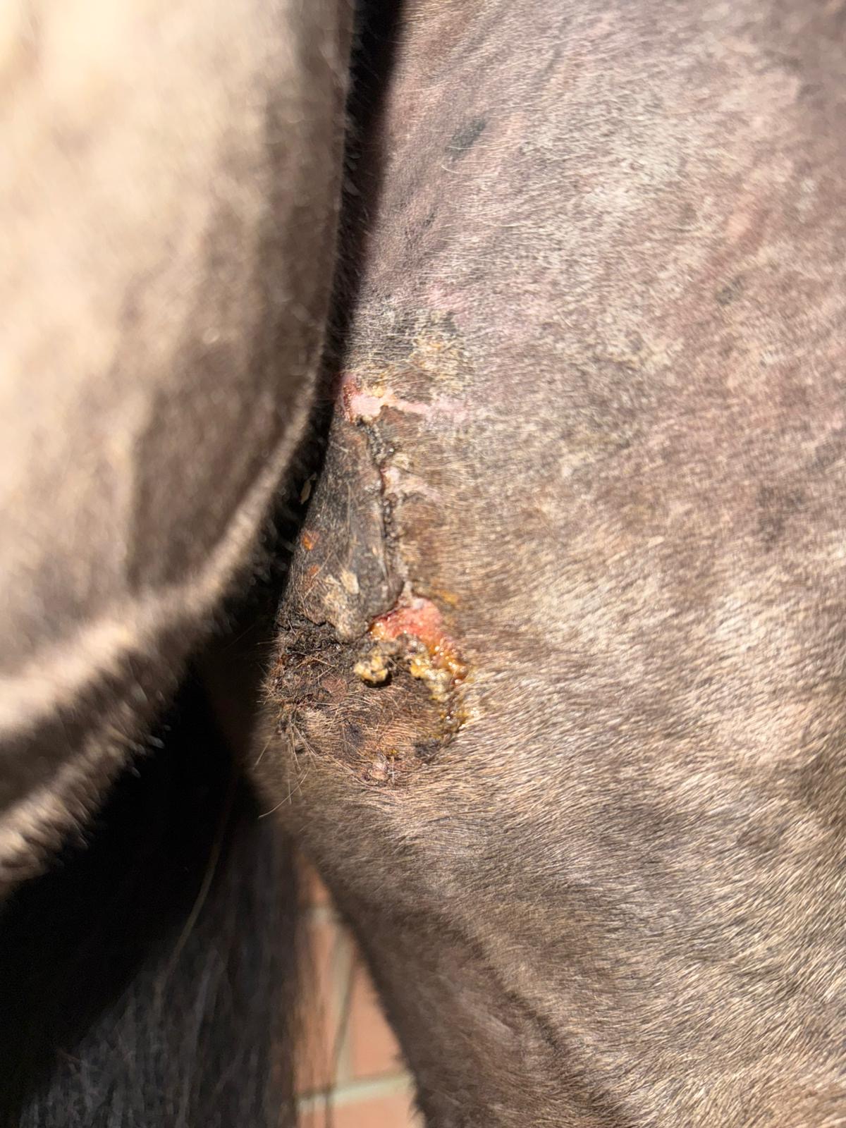 Der Tierarzt war am Montag kurz da, hat jedoch nichts weiter dazu gesagt. Heute habe ich ihn erneut kontaktiert. Der Kommentar zu den Bildern gestern war, 6 Tage Pause und 2x tgl Jodsalbe. In der Hoffnung, dass der Tumor sich löst und wir sehen was unterm dem Tumor zum Vorschein kommt..