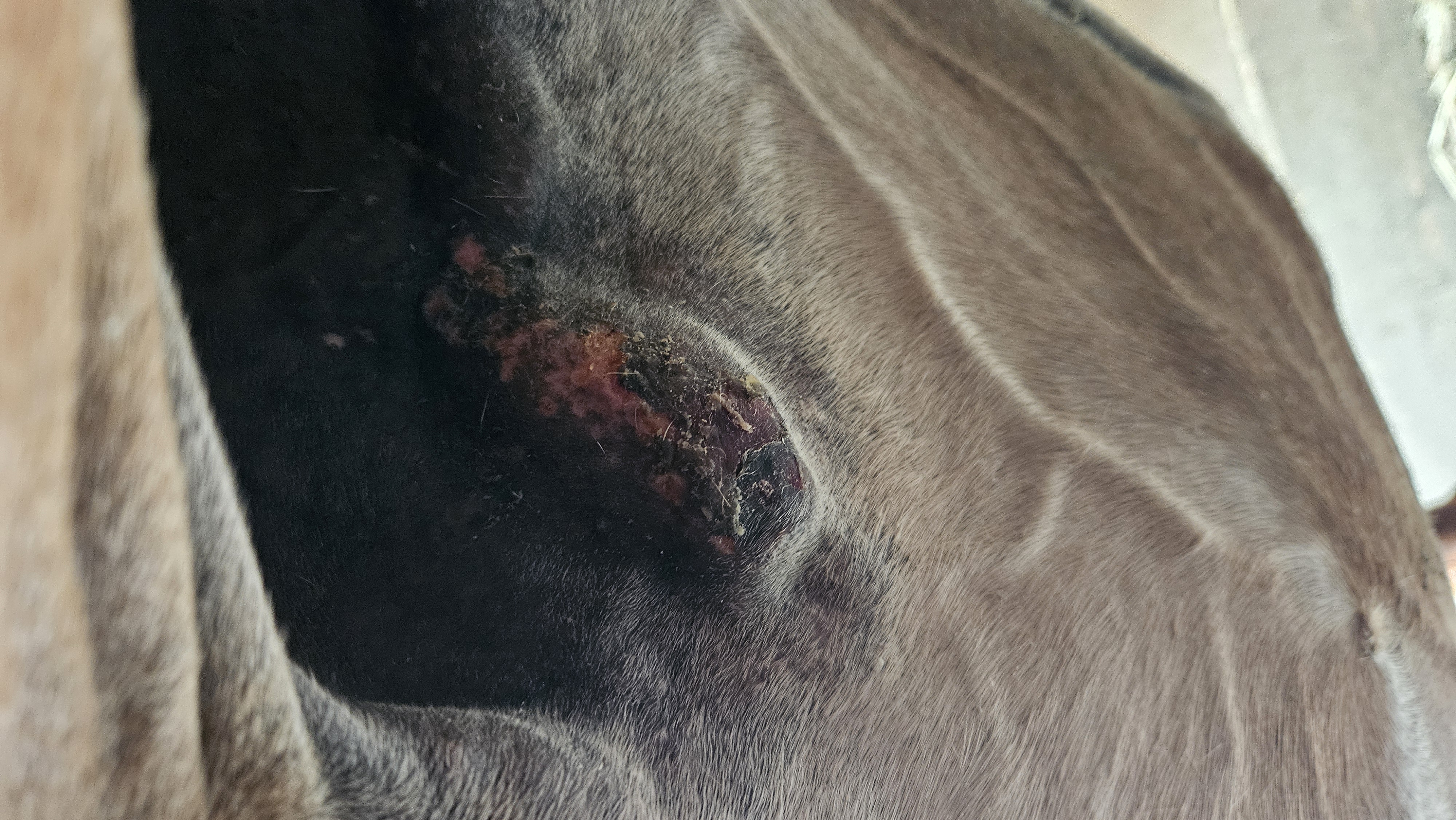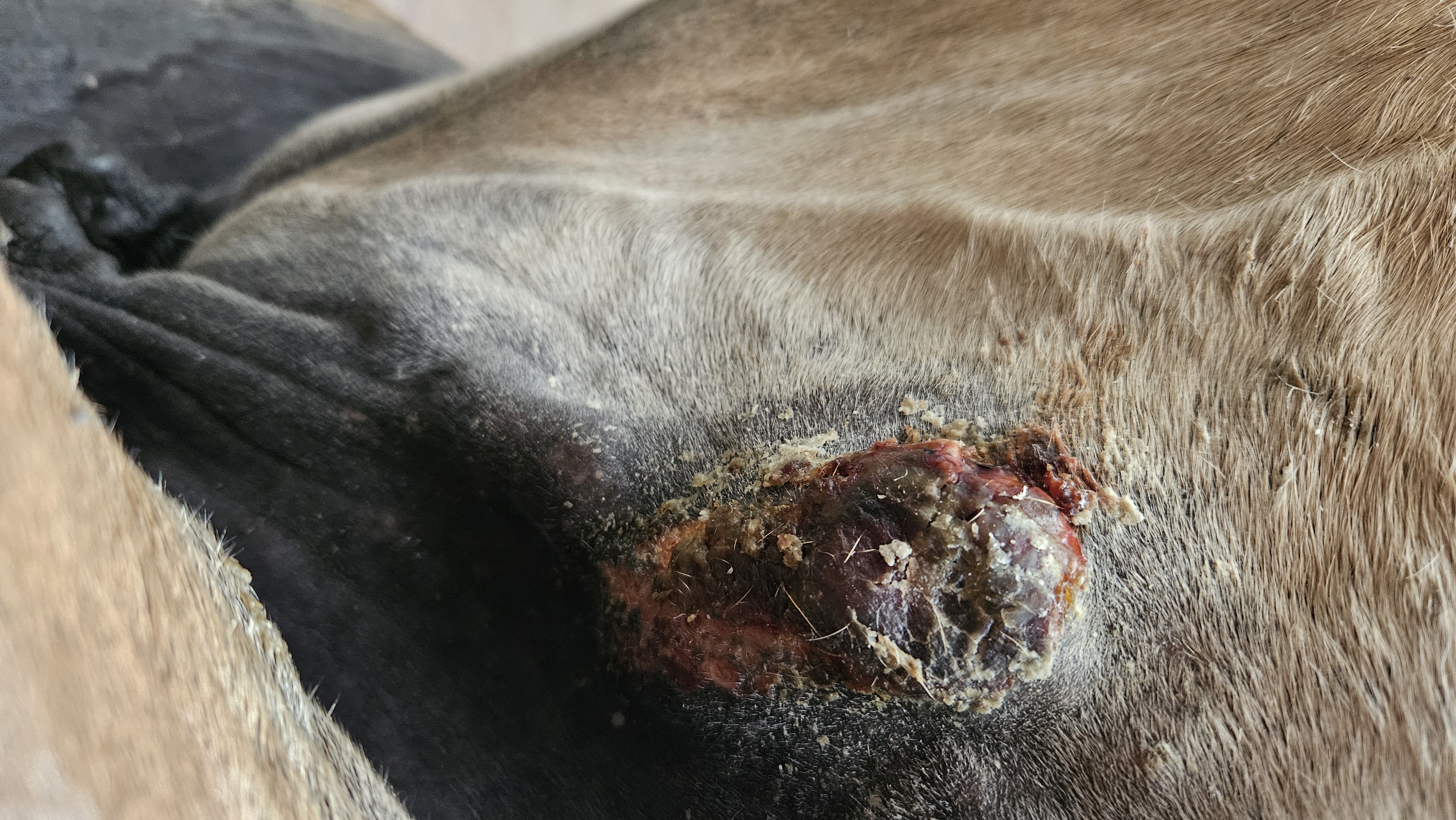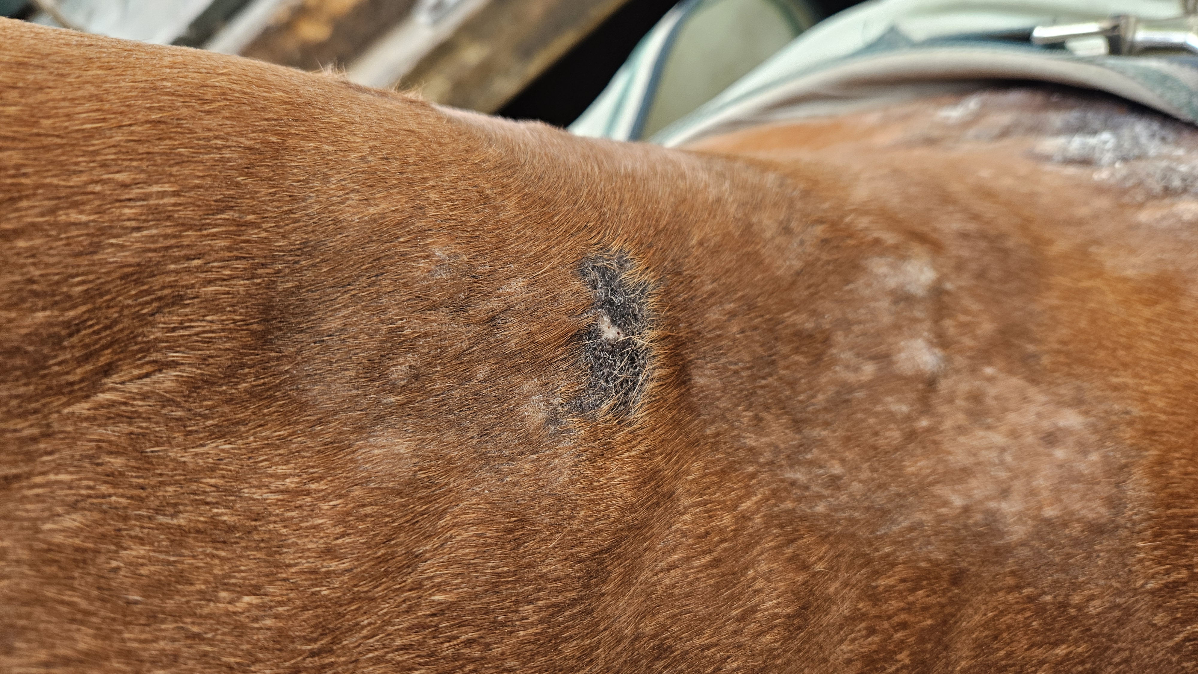 Ich wollte eigentlich drum herum kommen, weil es damals kein Zucker schlecken war, das sarkoid am hals zu schmieren, weil sie sehr empfindlich ist und zudem auf vieles allergisch reagiert. Kokosöl, Ballistol, alle fliegensprays, die nicht natürlich sind, und selbst auf natürliche teilweise. Sie ist ekzemerin und ohne Decke ist keine Option, weswegen ich das sarkoid an der brust erst im Herbst angehen kann. Die decken sitzen ja alle im brustbereich recht eng.