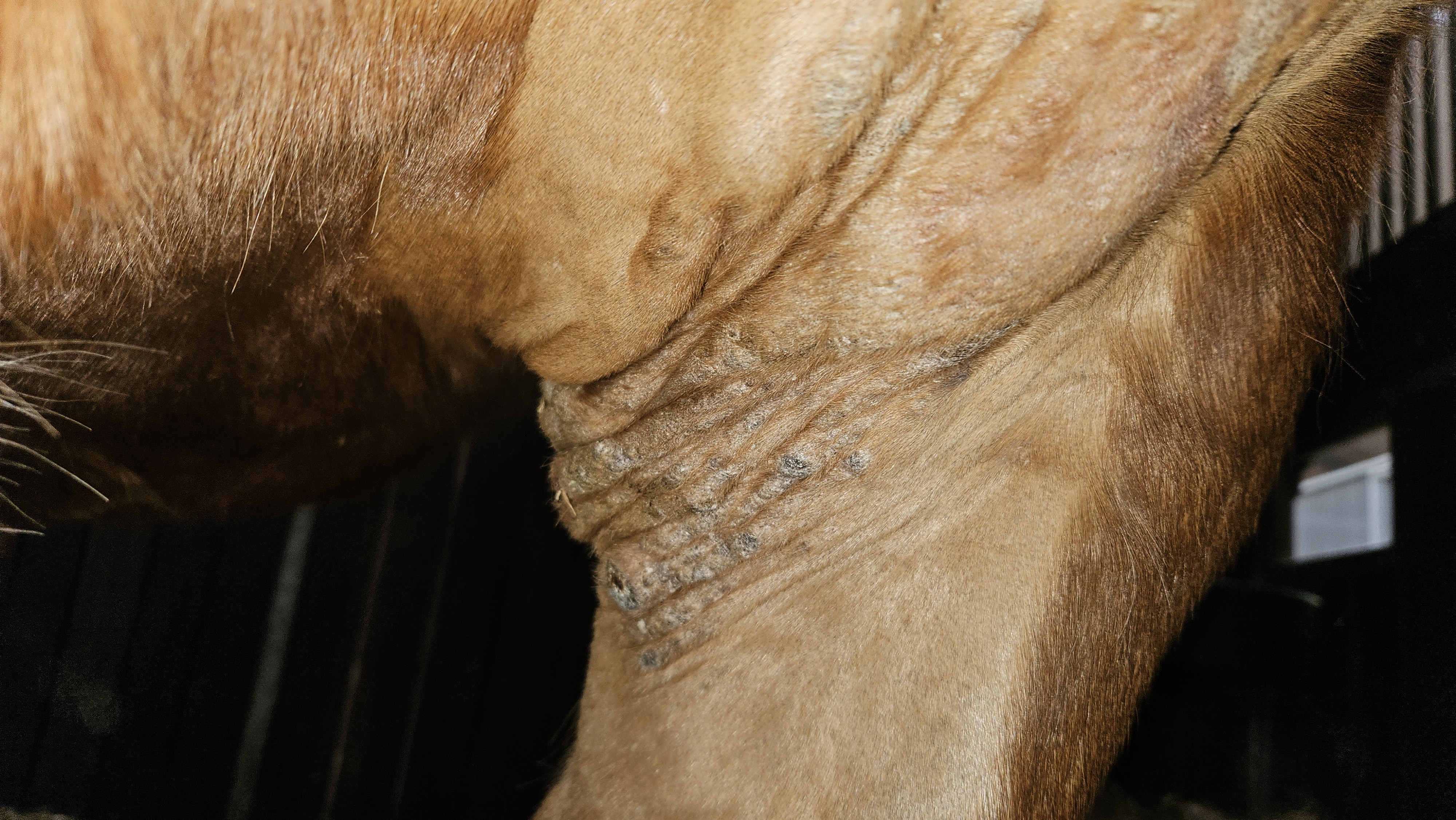 Und das ist das letzte sarkoid. Auch das könnte ich, wenn erst im Herbst anfangen zu behandeln, außer wenn ihr sagt, fliegenmaske an der Stelle wäre kein Problem.