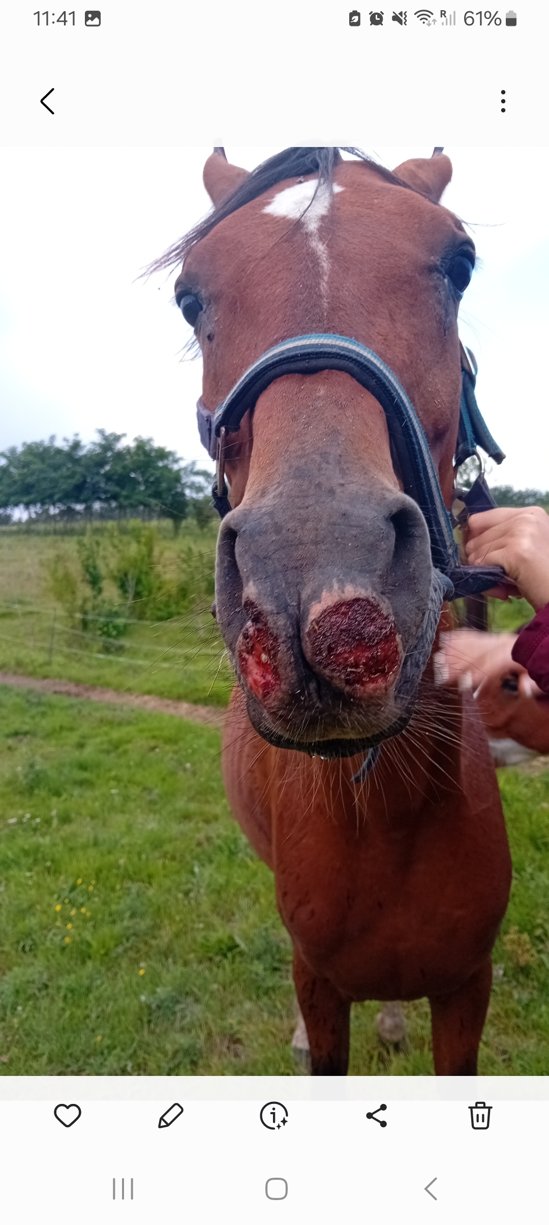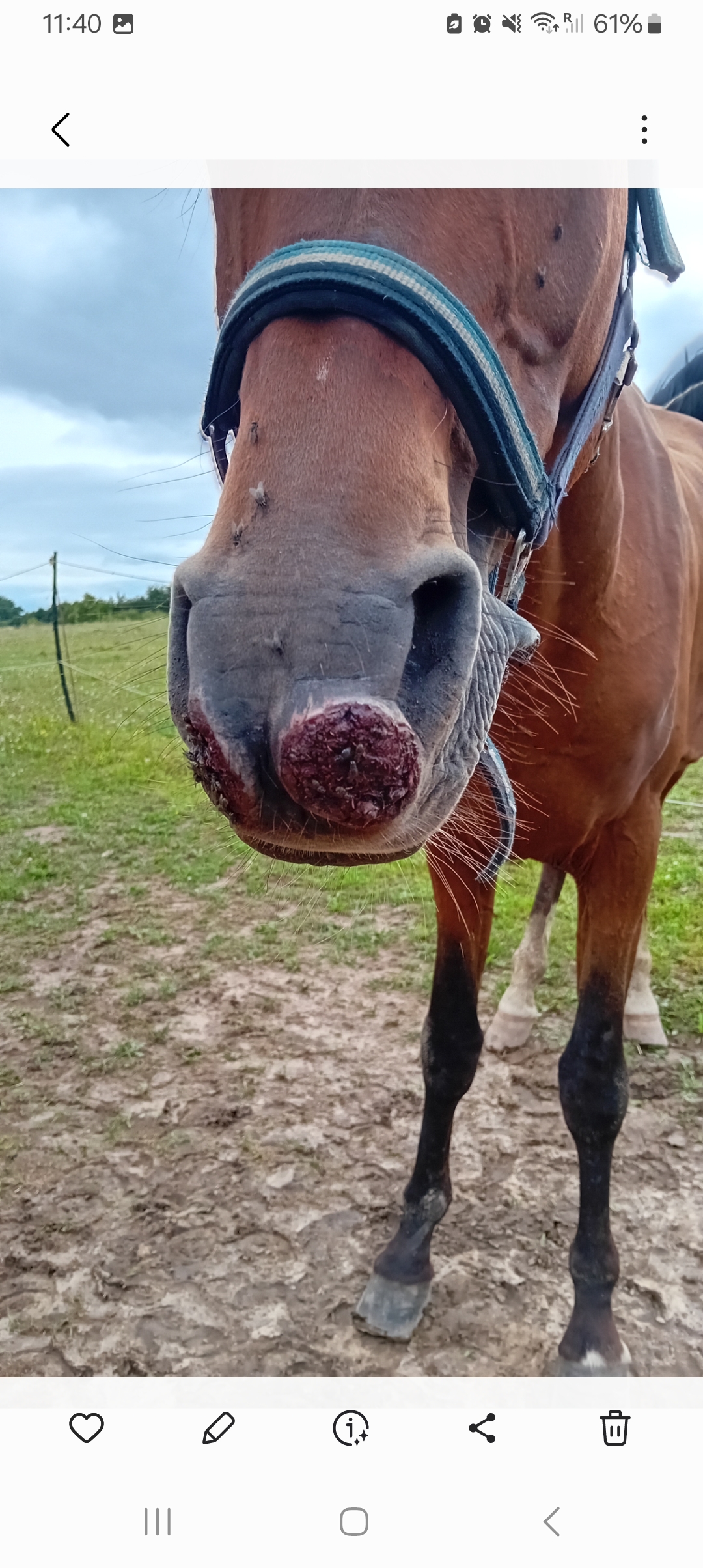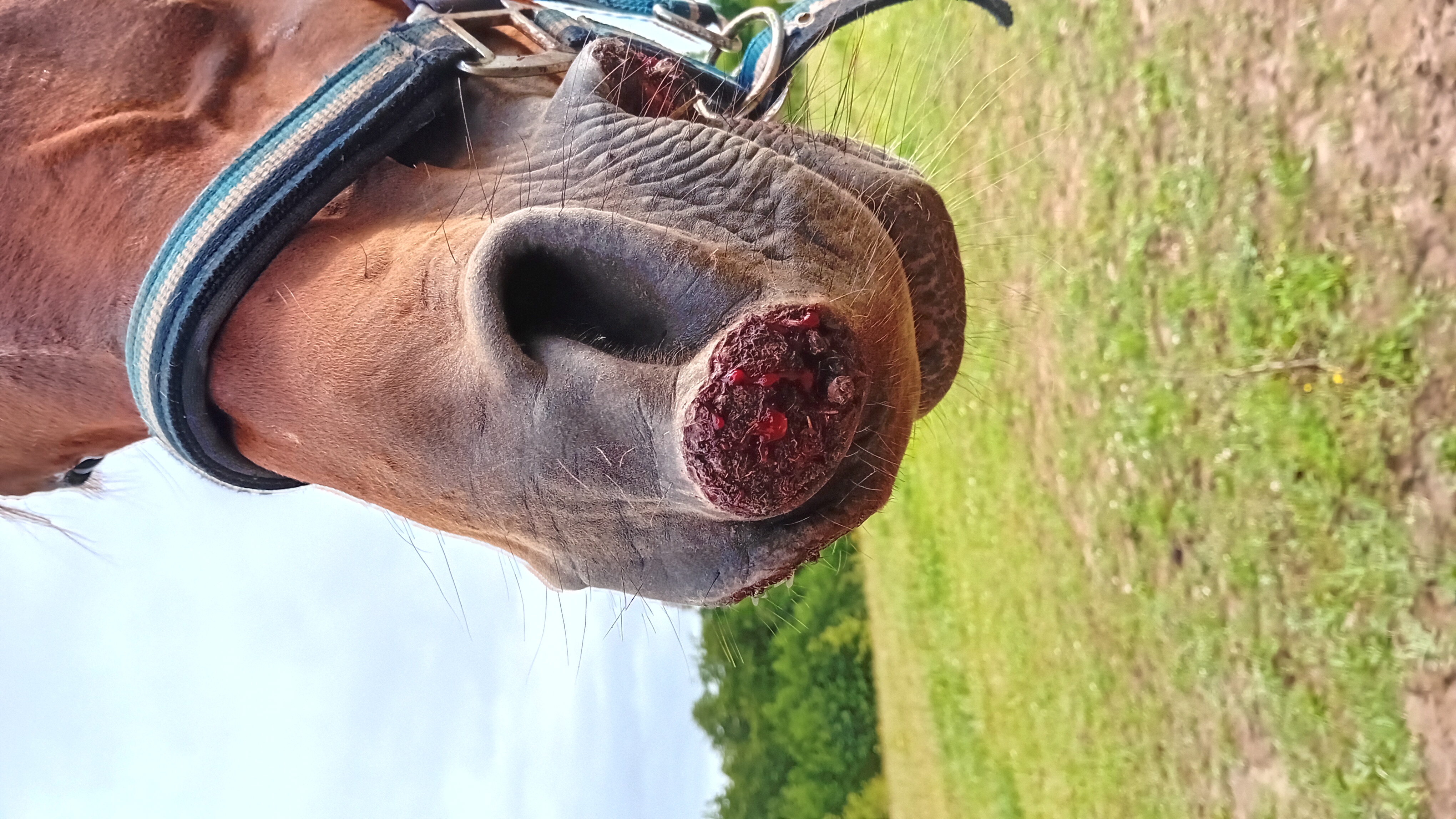 Am Anfang waren es nur kleine wunde und rauhe Stellen unterhalb der Nüstern. Die Tierärztin meinte, ich solle sie desinfizieren und täglich mit einer Wundheilungssalbe eincremen.