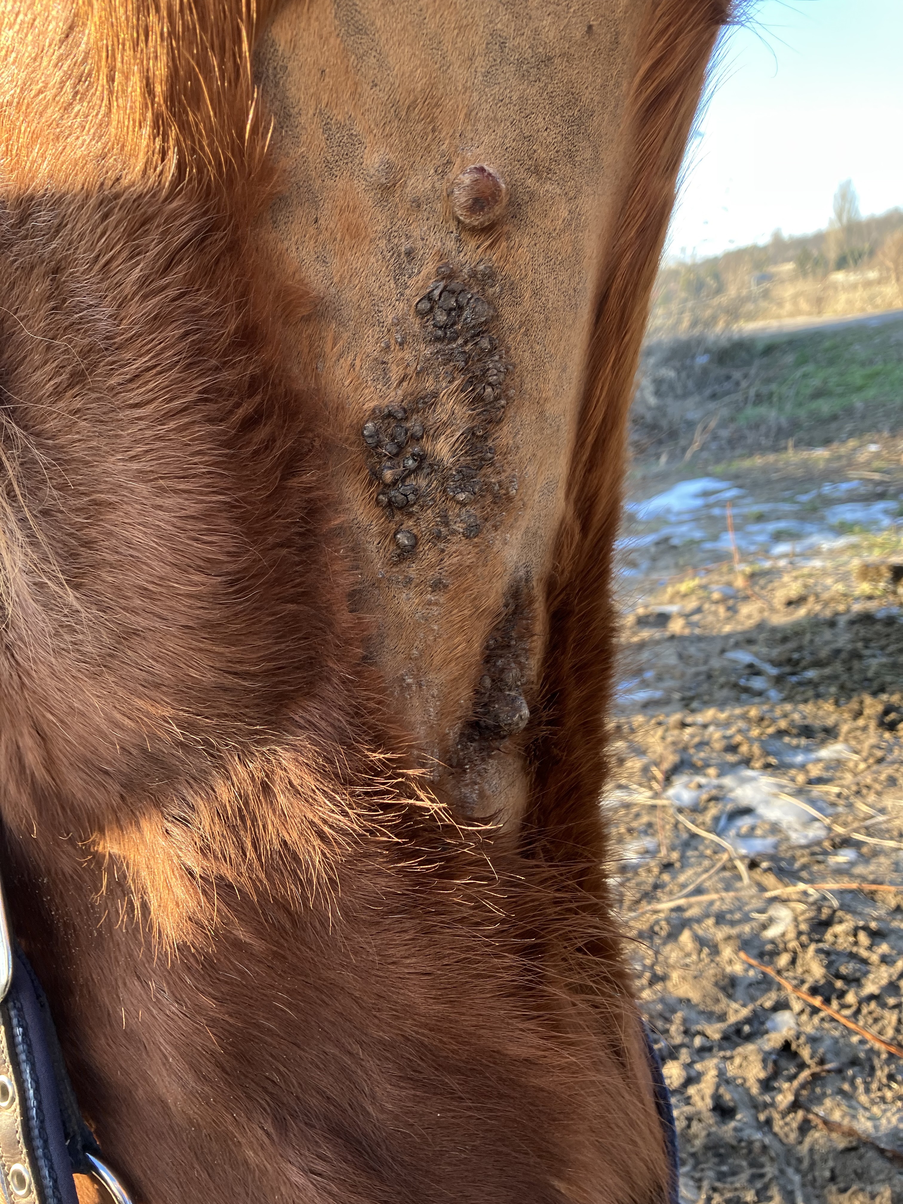 meine Stute hat im letzten Jahr verschiedene Sarkoide am Hals entwickelt.Ich schmiere seit 2 Wochen mit Compx 1:1 und würde mich über Begleitung bei der Behandlung freuen.