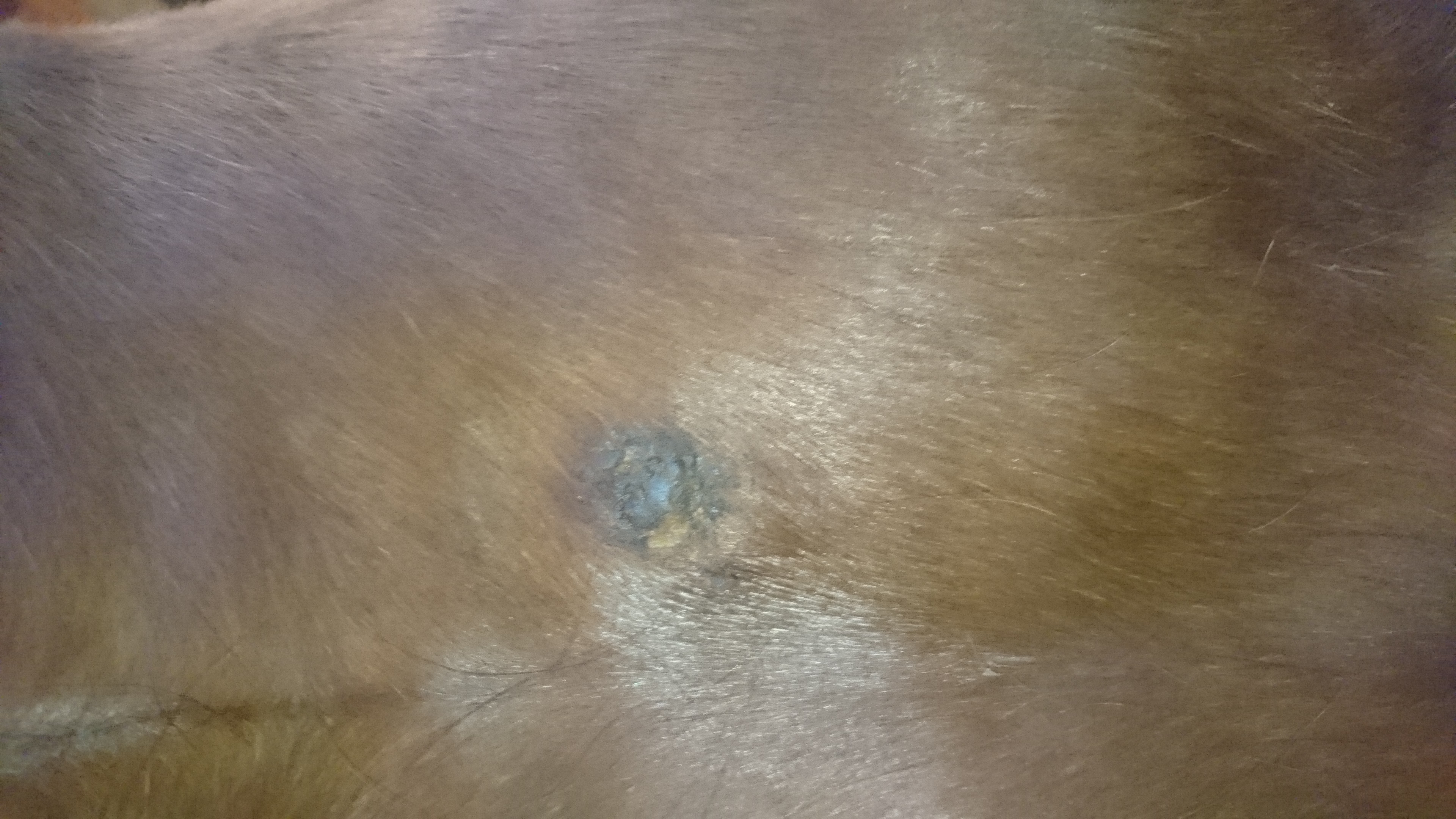 Hallo, ich melde mich mit aktuellen Bildern zurück. Es fällt mir nach wie vor schwer abzuwägen wann geschmiert wird und wann nicht. Zum Teil wucherte das Tumorgewebe unter der Kruste weiter wobei die Krusten wenigstens mal abfielen. Auch ging an einem Sarkoid dir Schwellung zurück. Ich möchte euch bitten eure Meinung zu jedem der vier Sarkoide zu schreiben. SCHMIEREN ODER PAUSIEREN.