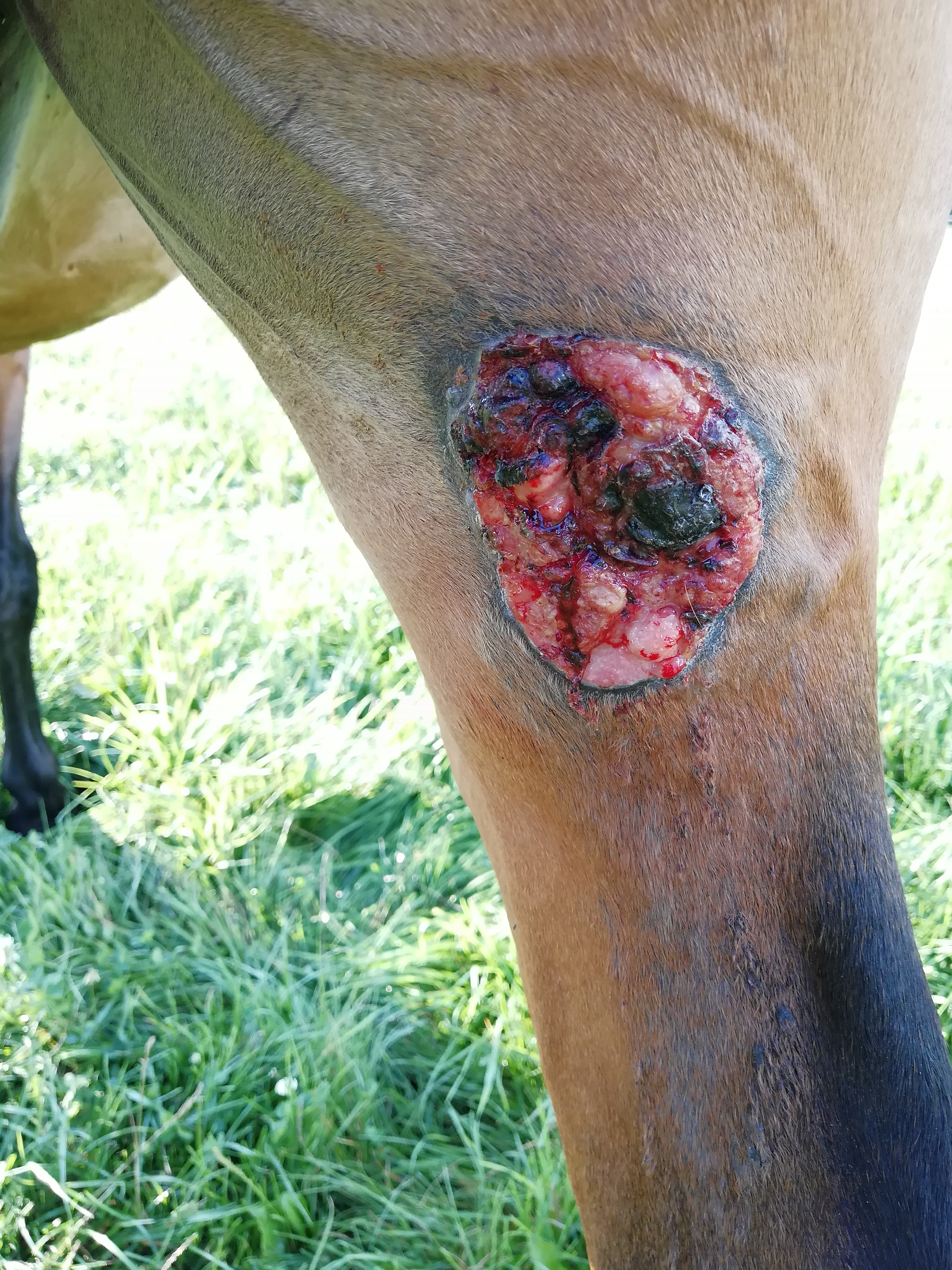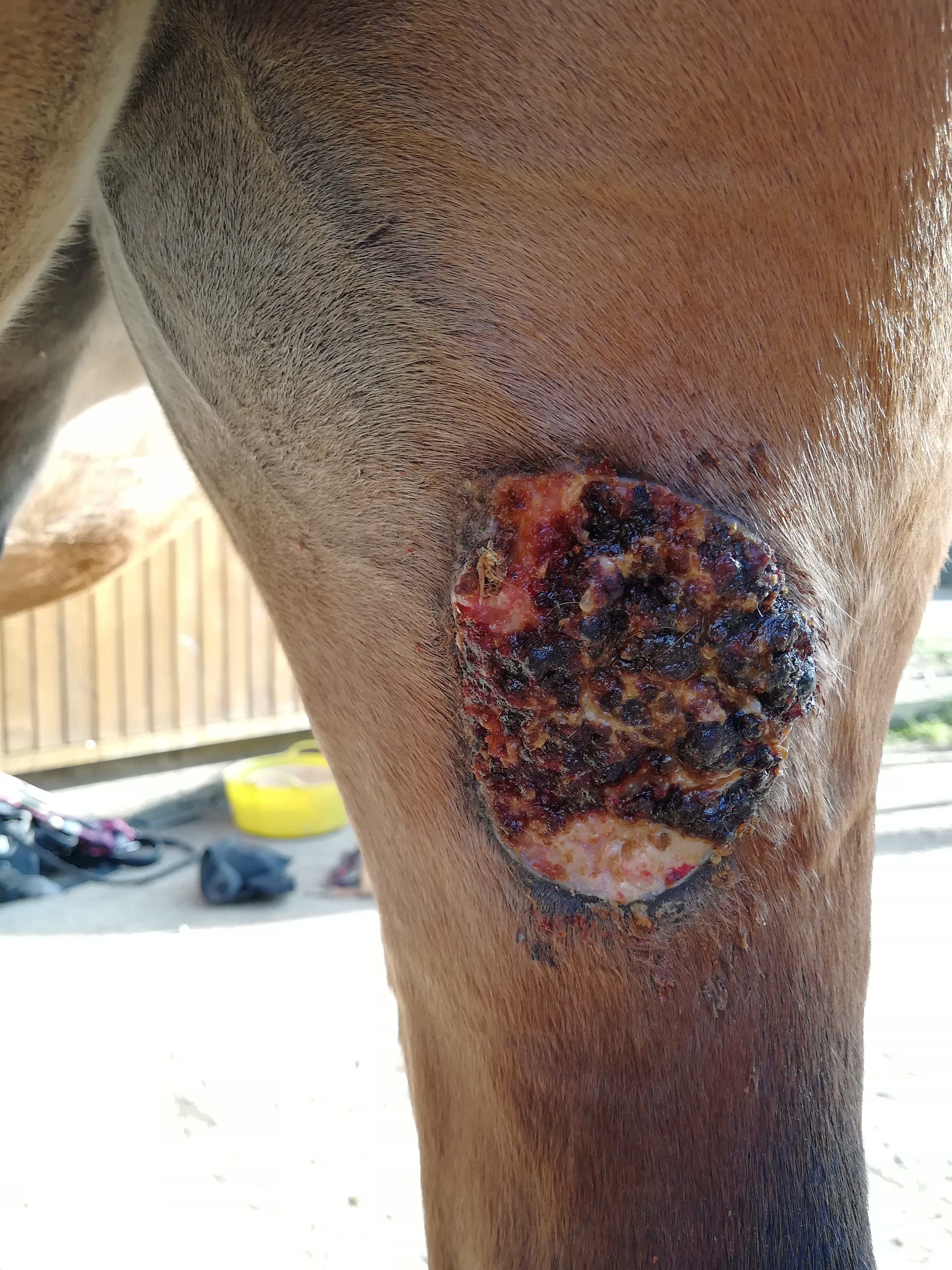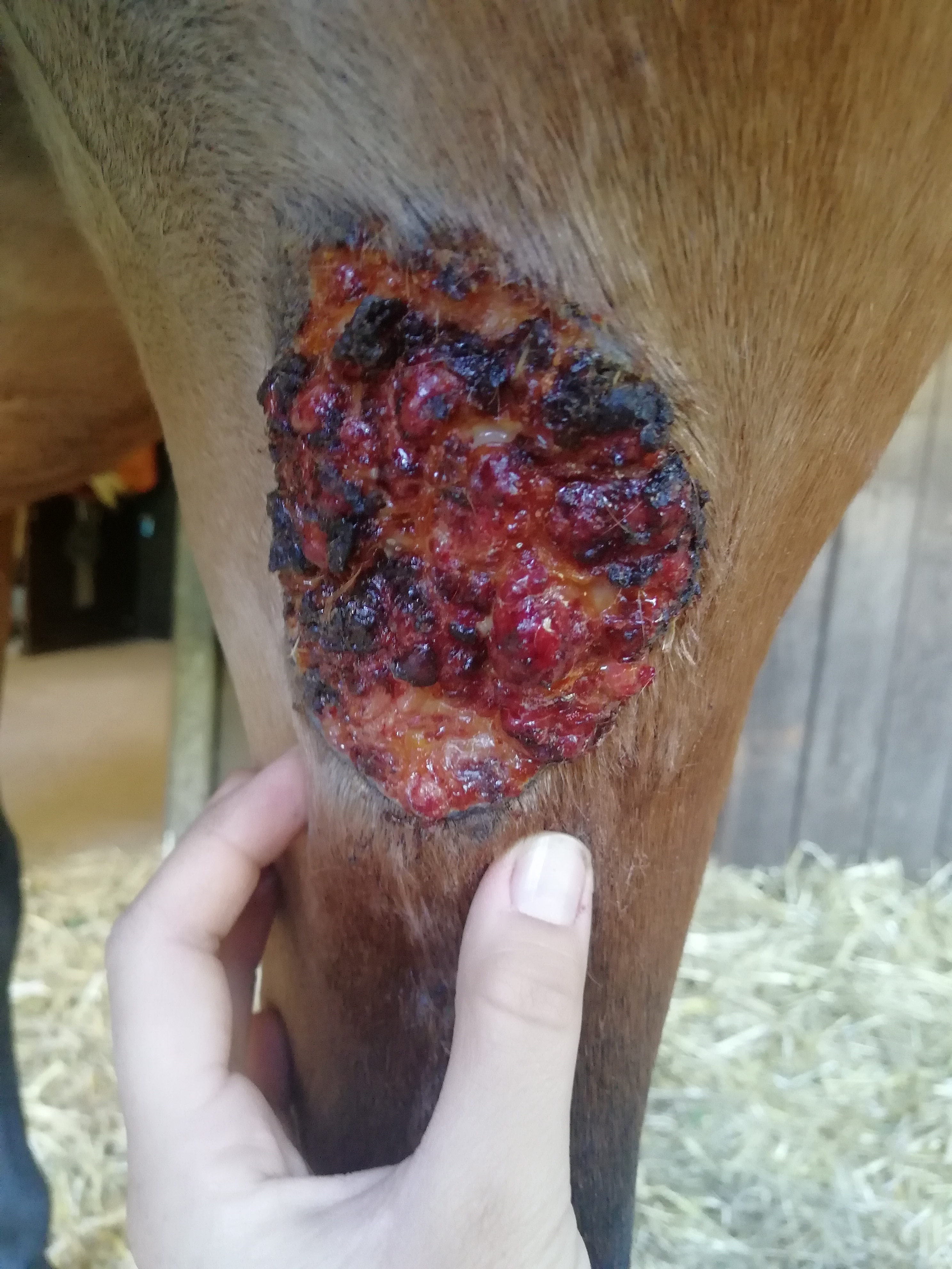 Mein armer Lumi (4 jähriger, brauner, PRE) hat seit Winter 2017 ein aggressives Sarkoid am hintern Innenschenkel. Ich denke, das sein Immunsystem damals auf der Hengstkoppe - einem Assistall, der anfangs einen super Eindruck machte, schlapp gemacht hat. Hab ihn so schnell wie möglich legen lass und bin sofort umgezogen. Damals war ES Daumennagelgroß und der Tierarzt meinte in Ruhe lassen. Eines Tages ist dann das Fell ringsum abgefallen und ES war ca. 6 cm groß und flächig.